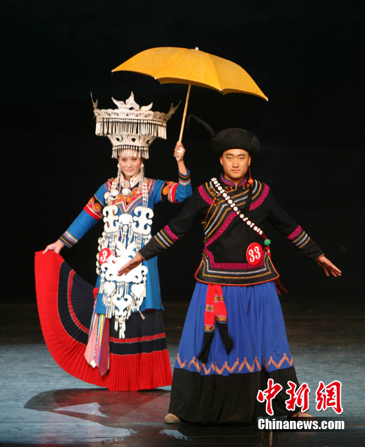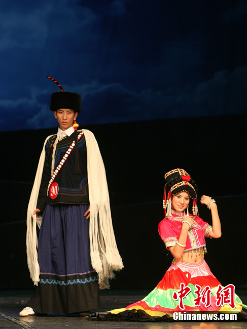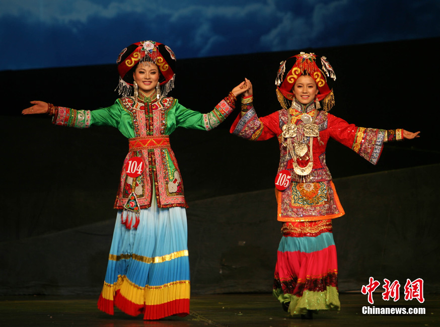 8月3日凌晨,來自四川、云南、貴州的100多位彝族青年男女經(jīng)過4個多小時緊張的復(fù)賽,65名彝族青年男女進入決賽。本次大賽吸引了云南楚雄、紅河、石林,巍山、寧蒗,貴州威寧和四川九龍、石棉、涼山州等12個州、縣的彝族青年男女共同角逐“索瑪”獎和“金鷹”獎。通過初賽、復(fù)賽、決賽3J賽制,選出彝族最靚的美女和最俊的帥哥,將分別授予“索瑪獎”和“金鷹獎”。圖為比賽中的參賽選手。中新社發(fā) 劉忠俊 攝