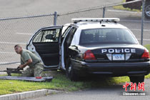 當(dāng)?shù)貢r(shí)間3日上午,美國(guó)東部康涅狄格州曼徹斯特的一間大型啤酒經(jīng)銷(xiāo)公司發(fā)生槍擊事件,槍手是公司的一名司機(jī),他剛剛拒絕了公司要他辭職的要求,隨后不久就開(kāi)槍向自己的同事們掃射。目前已造成9人死亡,多人受傷。當(dāng)?shù)鼐诫S后證實(shí),這名槍手也在死亡的9人之中。圖為警方在事故現(xiàn)場(chǎng)。