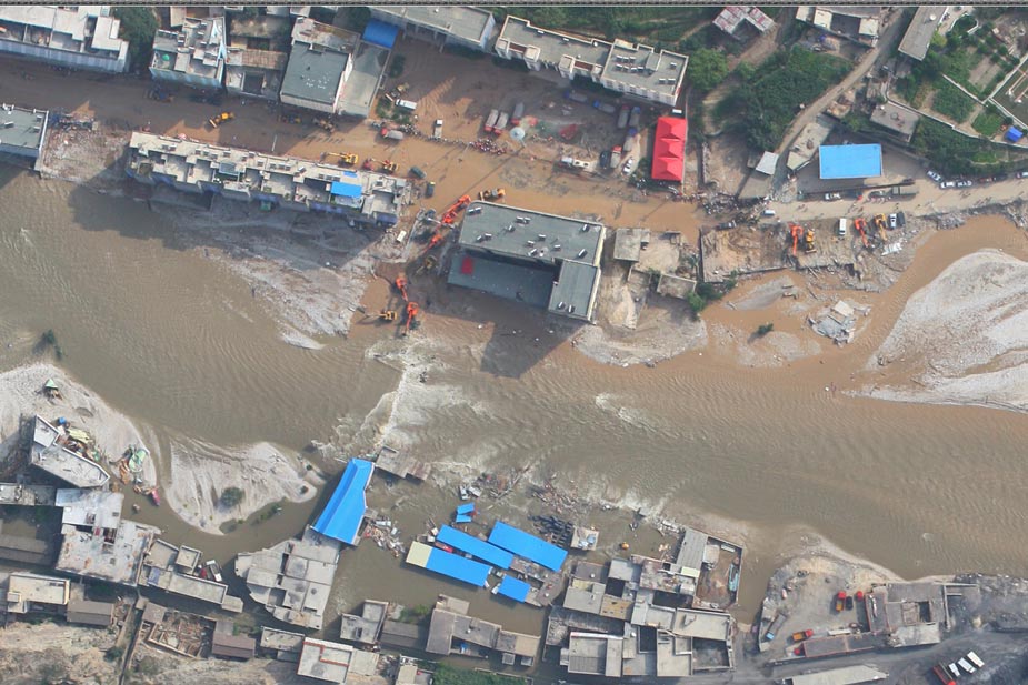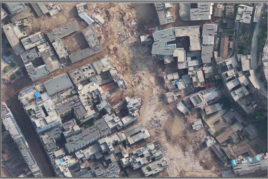 當(dāng)晚10點(diǎn),中國測繪科學(xué)研究院技術(shù)人員利用高分辨率遙感影像數(shù)據(jù)一體化測圖系統(tǒng)PIXELGIRD,對無人飛機(jī)獲取的數(shù)據(jù)連夜進(jìn)行鑲嵌、拼接、糾正,獲取了災(zāi)區(qū)高分辨率影像數(shù)據(jù)。國家基礎(chǔ)地理信息中心以最快速度,運(yùn)用軟件將這些抽象的數(shù)據(jù)“變”為直觀的地圖,迅速提供給決策機(jī)構(gòu)和相關(guān)部門,供災(zāi)后重建規(guī)劃和建設(shè)使用。