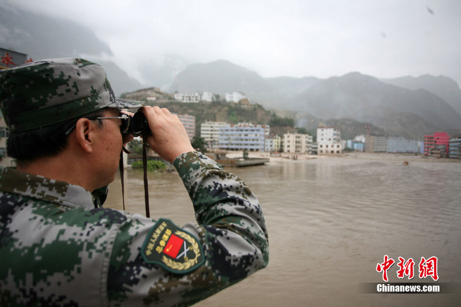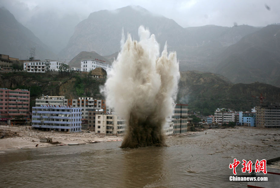 8月13日,甘肅舟曲泥石流災(zāi)區(qū)上源小眼峪垮下的巨大山石。在大眼峪和小眼峪有四道被稱作“谷坊壩”的四道防泥石流堤壩,在這次災(zāi)害中全部被沖毀。中新社發(fā) 廖攀 攝