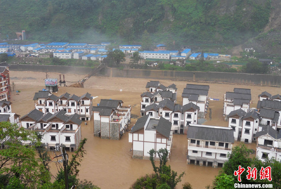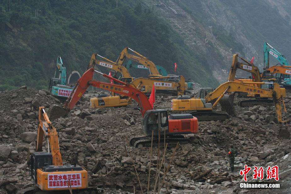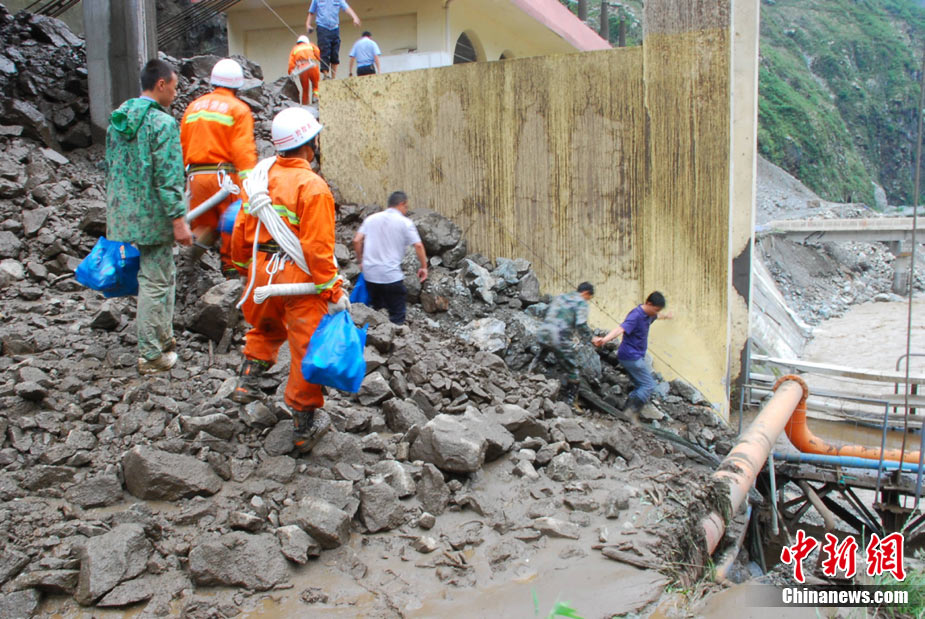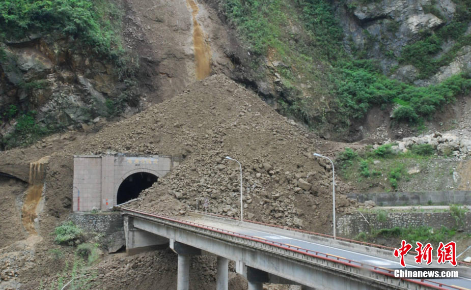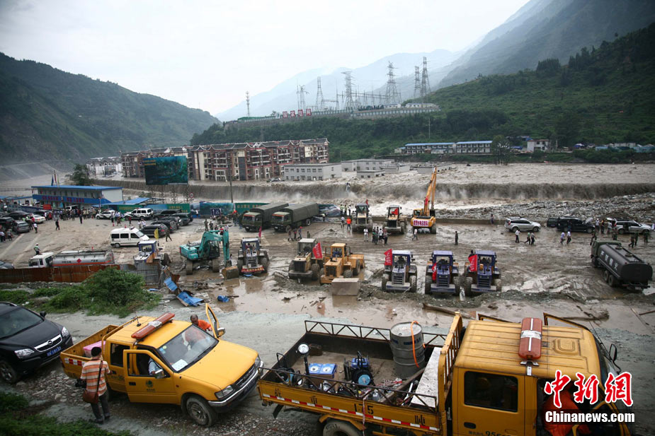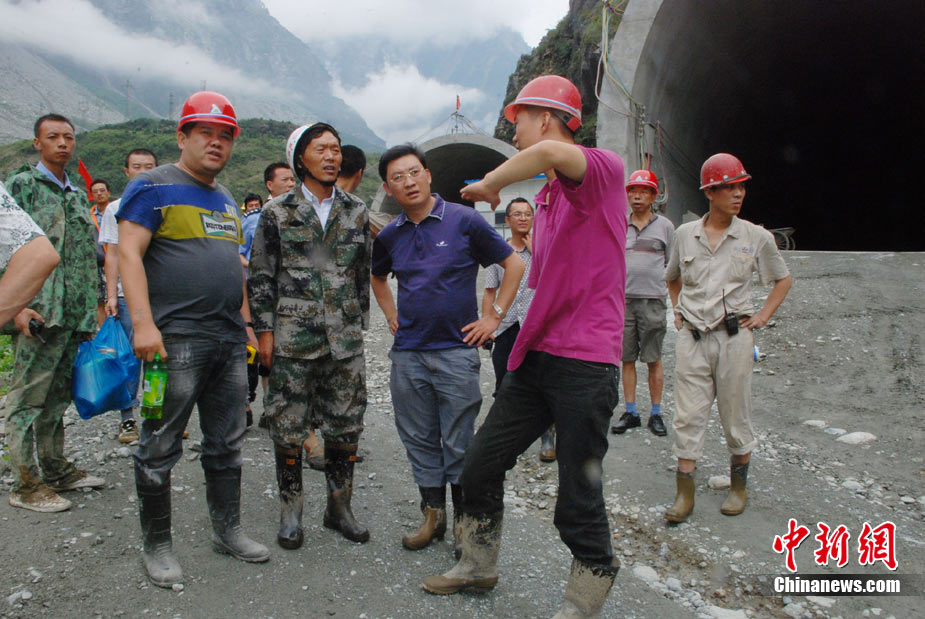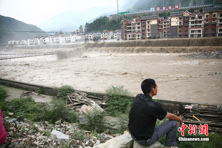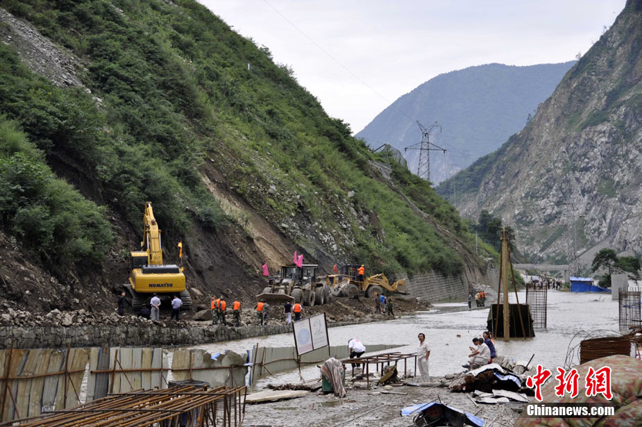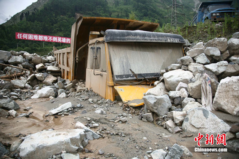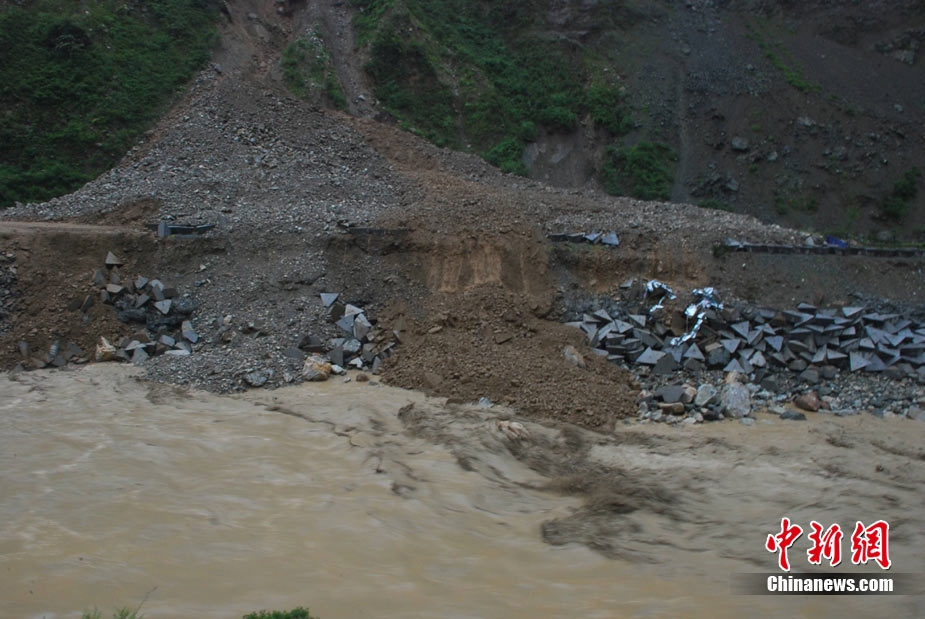 8月14日凌晨,連續(xù)強(qiáng)降雨引發(fā)汶川境內(nèi)映秀鎮(zhèn)、漩口鎮(zhèn)、銀杏鄉(xiāng)、三江鄉(xiāng)等鄉(xiāng)鎮(zhèn)發(fā)生多處泥石流災(zāi)害。其中銀杏鄉(xiāng)境內(nèi)泥石流塌方量高達(dá)6萬立方米,流經(jīng)該鄉(xiāng)的岷江也因泥石流阻斷,正在形成堰塞湖;映秀鎮(zhèn)板房醫(yī)院被泥石流沖毀。圖為汶川縣委書記青理東在映汶高速三標(biāo)段了解受損情況。中新社發(fā) 汶宣 供