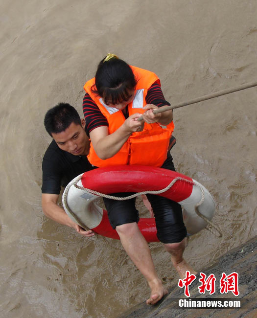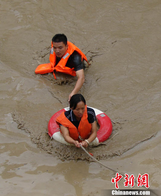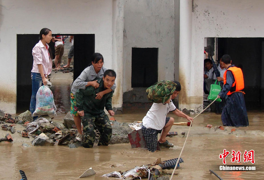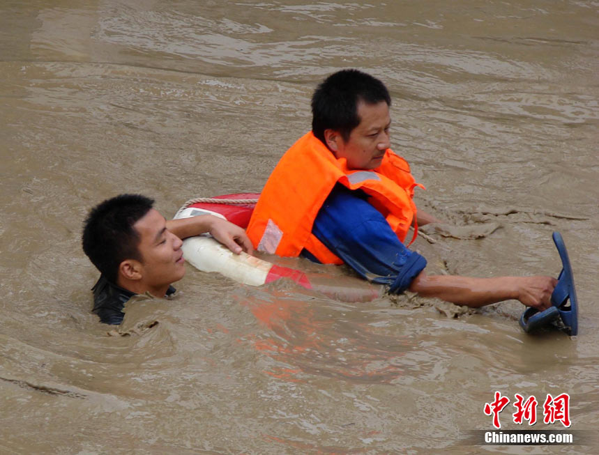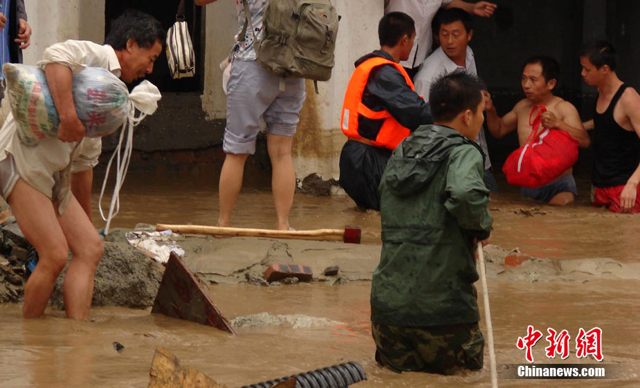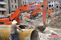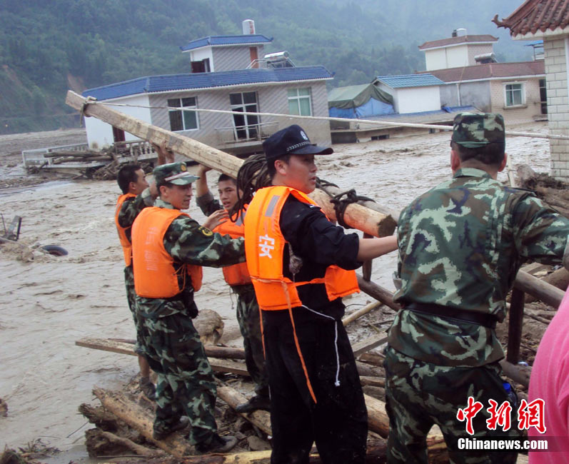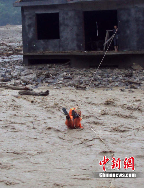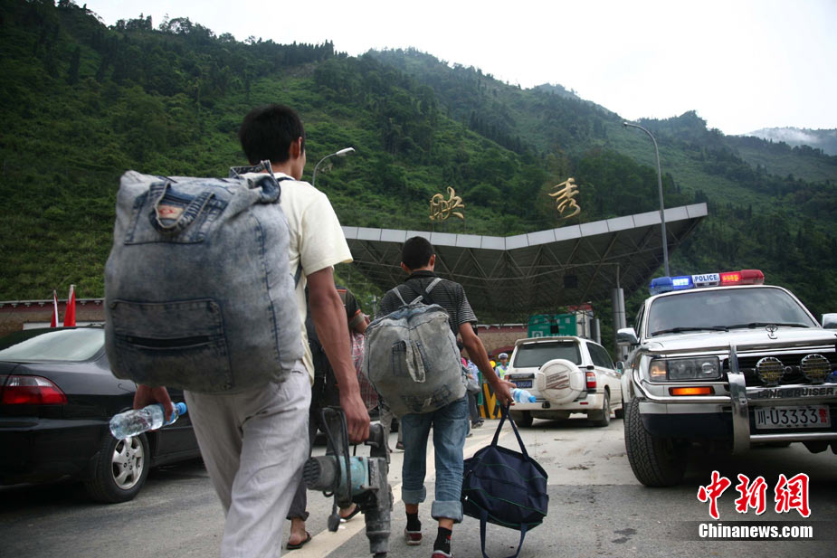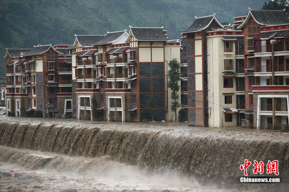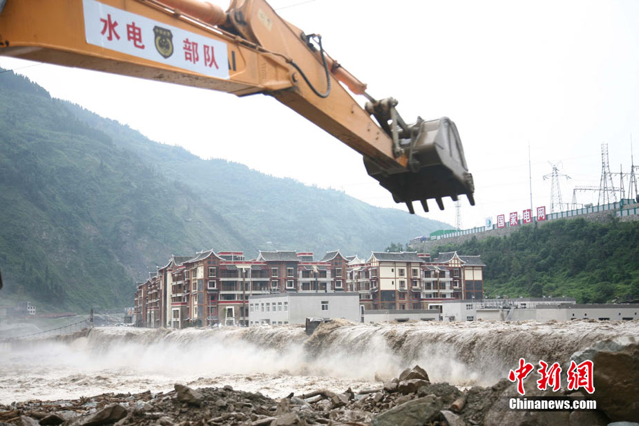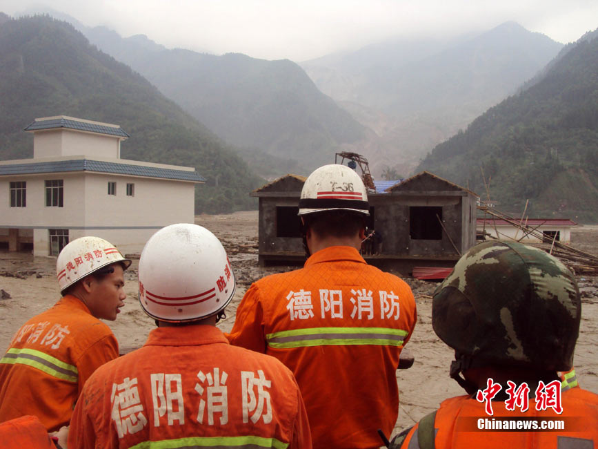 8月14日凌晨,連續(xù)強(qiáng)降雨引發(fā)汶川境內(nèi)映秀鎮(zhèn)、漩口鎮(zhèn)、銀杏鄉(xiāng)、三江鄉(xiāng)等鄉(xiāng)鎮(zhèn)發(fā)生多處泥石流災(zāi)害。其中銀杏鄉(xiāng)境內(nèi)泥石流塌方量高達(dá)6萬立方米,流經(jīng)該鄉(xiāng)的岷江也因泥石流阻斷,正在形成堰塞湖;映秀鎮(zhèn)板房醫(yī)院被泥石流沖毀。圖為汶川縣委書記青理東在映汶高速三標(biāo)段了解受損情況。中新社發(fā) 汶宣 供