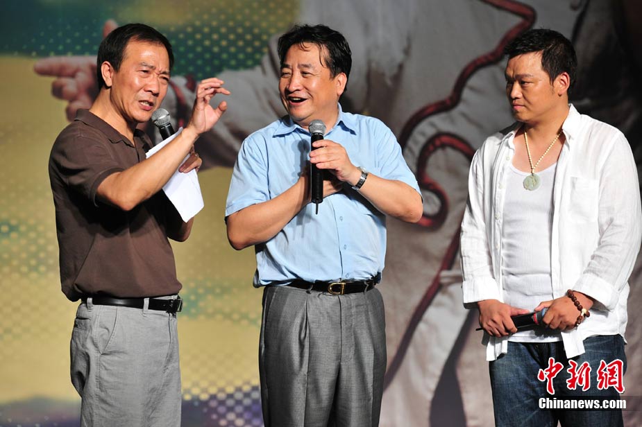 8月17日,被譽為“西部歌王”的原生態(tài)歌手高保利首張專輯《極域天音》在北京發(fā)布。著名歌唱家、藝術家王昆、徐沛東、姜昆、戴志誠到場祝賀,和高保利同為山西人的閻維文、譚晶上臺力挺老鄉(xiāng)讓高保利十分激動。圖為姜昆(中)和老搭檔戴志誠(左)現(xiàn)場不忘逗樂。中新社記者 李學仕 攝