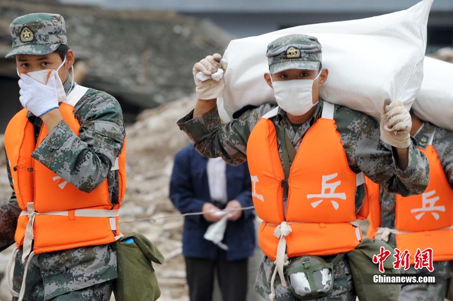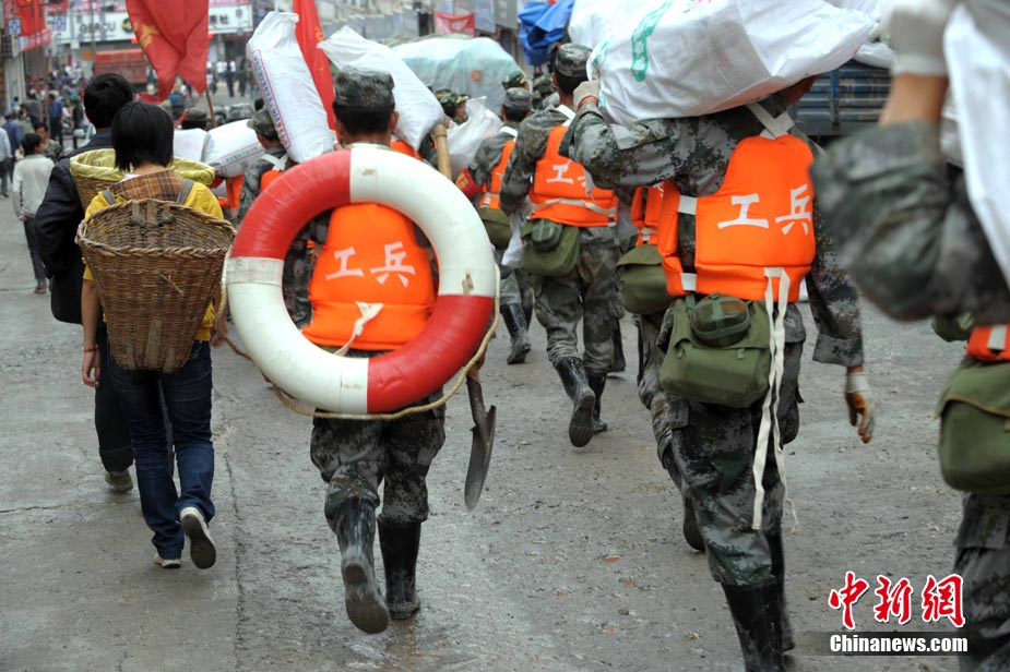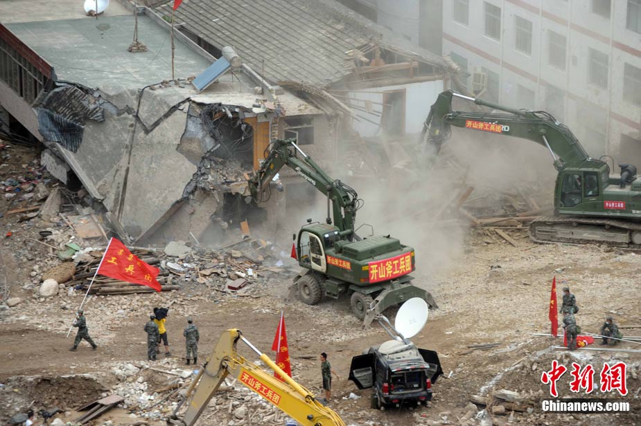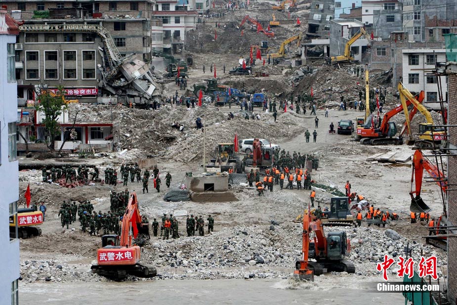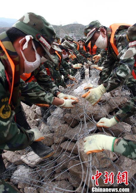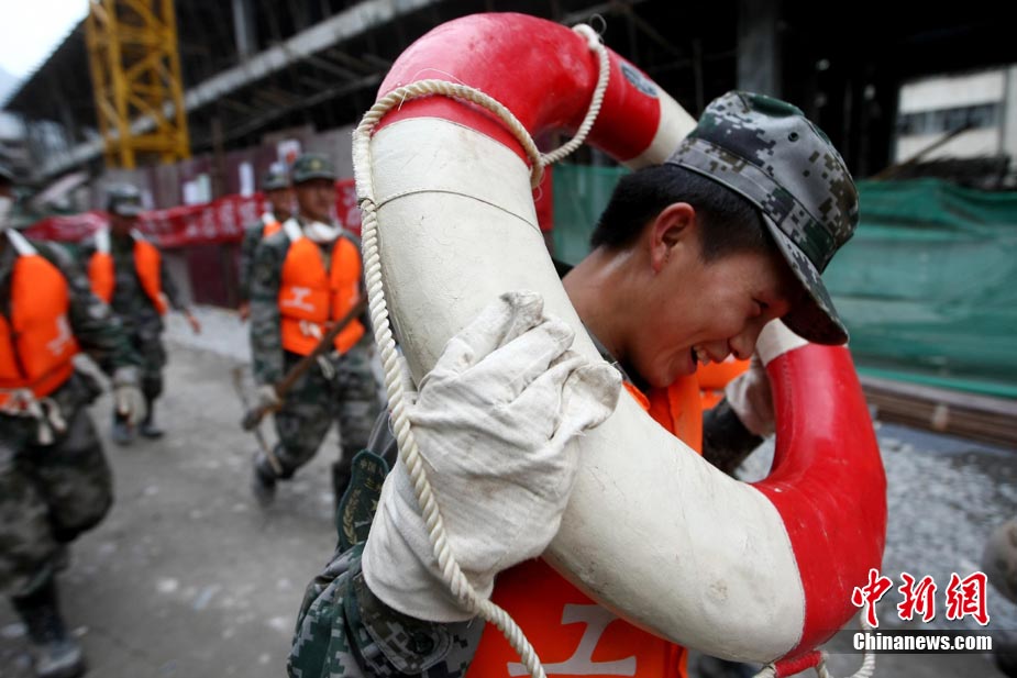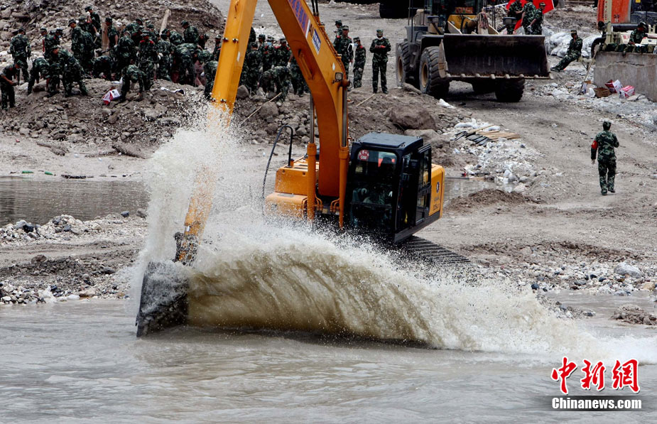 連日來,舟曲搶險(xiǎn)救災(zāi)部隊(duì)在三眼峪左岸通過鉛絲籠、石塊固基護(hù)腳,爭(zhēng)取盡早開展城江橋下堰塞體清淤疏通作業(yè)。中國(guó)水利部部長(zhǎng)陳雷表示,舟曲白龍江堰塞體的處置難度已經(jīng)超過了汶川大地震時(shí)的唐家山堰塞湖。目前,三眼峪以下河段泄流河道已基本形成。根據(jù)武警水電第三總隊(duì)制定的目標(biāo),8月26日,白龍江中斷面控制水位要降至1303.38米,水位累計(jì)下降5.5米。圖為8月18日,武警水電第三總隊(duì)在舟曲挖掘堰塞體。中新社記者 殷春永 攝