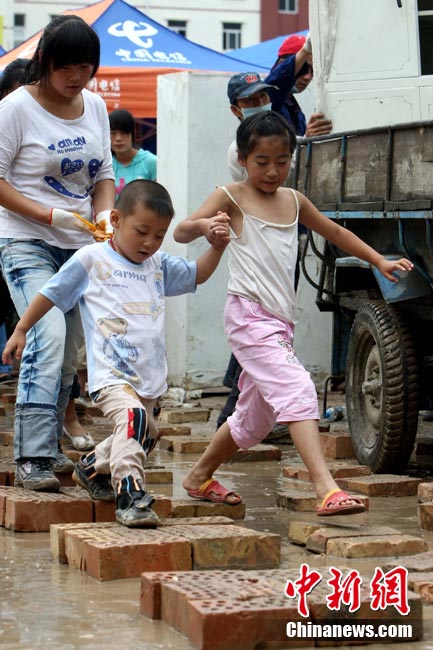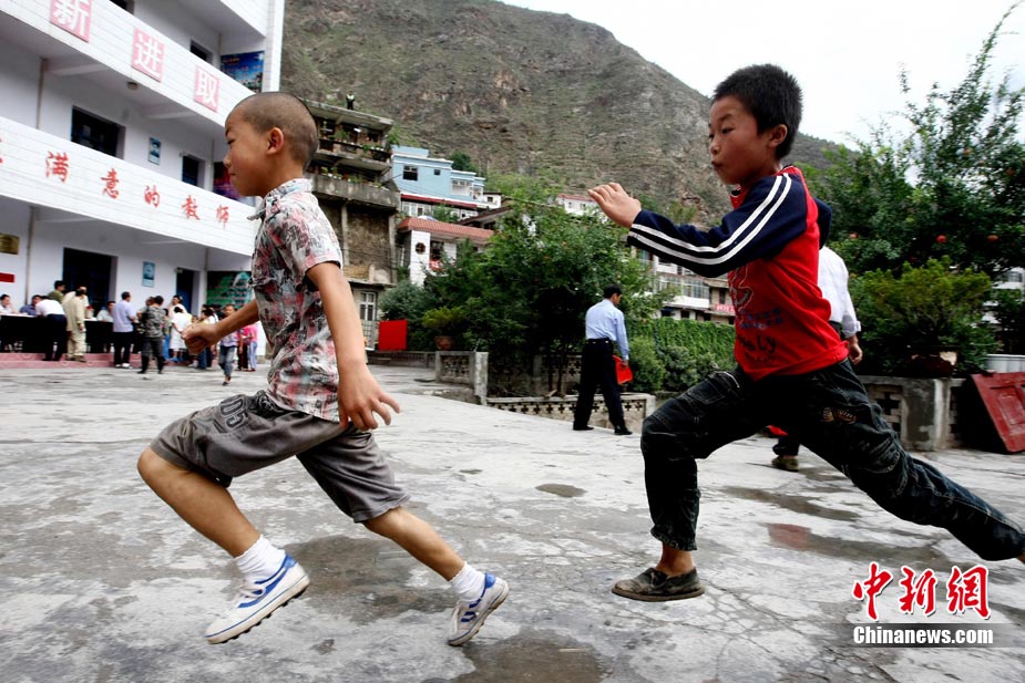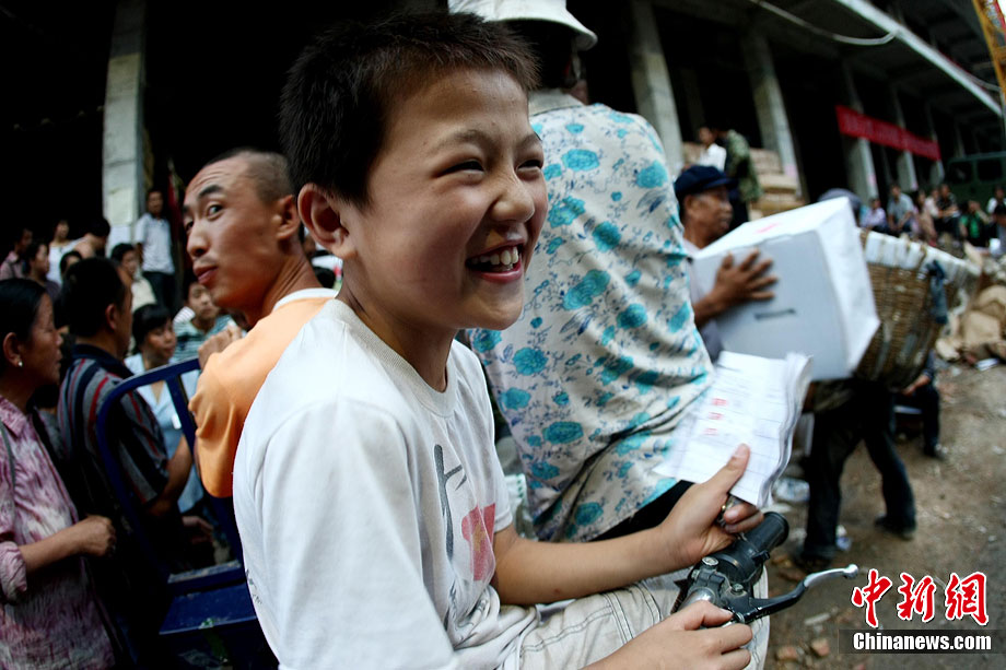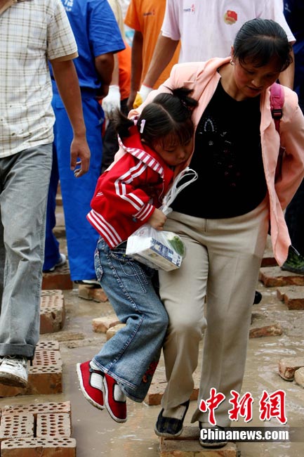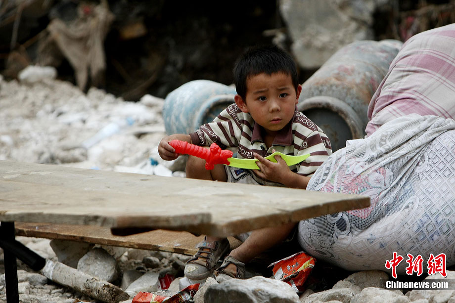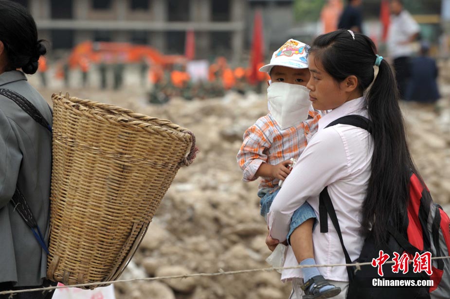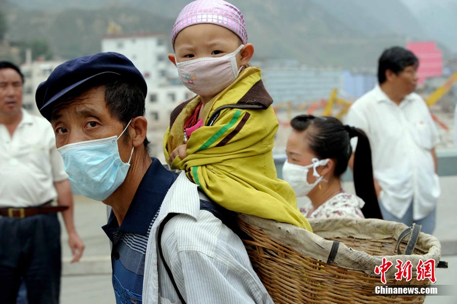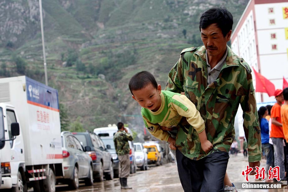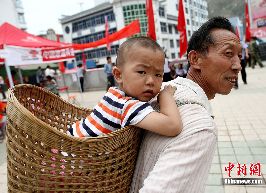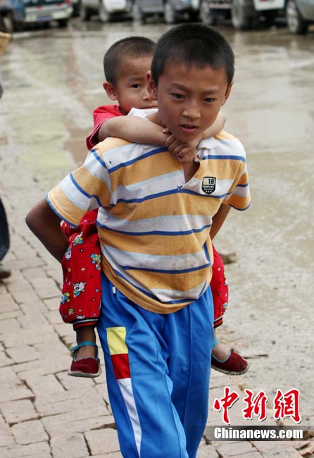 8月7日夜22點(diǎn)左右,甘肅甘南藏族自治州舟曲縣發(fā)生特大泥石流。目前已致1287人遇難,457人失蹤;舟曲5公里長(zhǎng)、500米寬區(qū)域被夷為平地。突如其來的泥石流災(zāi)害,使舟曲許多兒童瞬間失去了家園,失去了學(xué)校,失去了親人。圖為爺爺用背簍背著小孫子。中新社記者 杜洋 攝