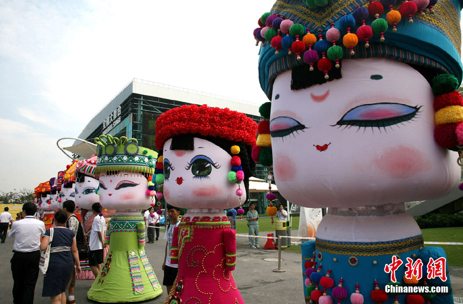 8月27日,上海世博會(huì)云南活動(dòng)周正式拉開帷幕。來自云南的26個(gè)巨型民族寶寶集中亮相開幕式,它們代表云南省內(nèi)的26個(gè)民族,歡迎海內(nèi)外嘉賓游客前來參觀。中新社記者 保旭 攝