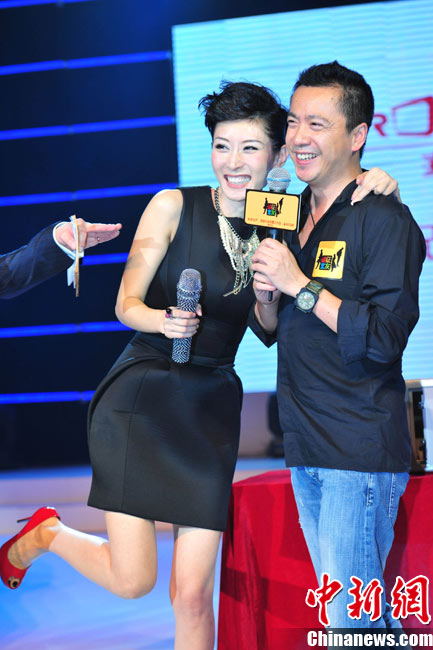 8月30日,著名主持人李霞在北京簽約華誼兄弟,宣布成立李霞工作室,聯手東方衛(wèi)視,推出大型真人秀節(jié)目《誠征室友》。娛樂主播一姐李霞親挑大梁的《誠征室友》是以年輕人合租生活為主題的全新節(jié)目,主題圍繞年輕人關注的“蝸居”、“合租”、“買車”等熱門話題展開。當天,李霞身穿黑色禮服勁舞出場,震撼宣布“復出”。心情大好的她“拳打”老板王中磊大開玩笑。前來捧場的張紀中更是向她支招,讓王中磊多給股份。圖為李霞“拳打”老板王中磊秀親熱。中新社記者 李學仕 攝