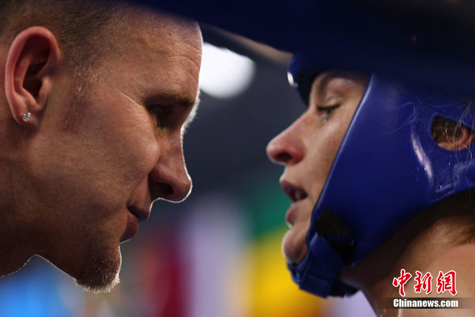 8月31日,2010年北京首屆世界武搏運動會泰拳比賽在北京奧體中心體育館進行了11個級別半決賽的較量,包括8個級別的男子半決賽和3個級別的女子半決賽。 中新社發(fā) 盛佳鵬 攝