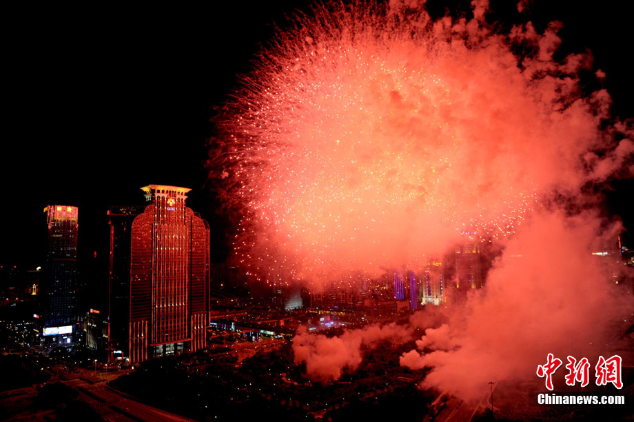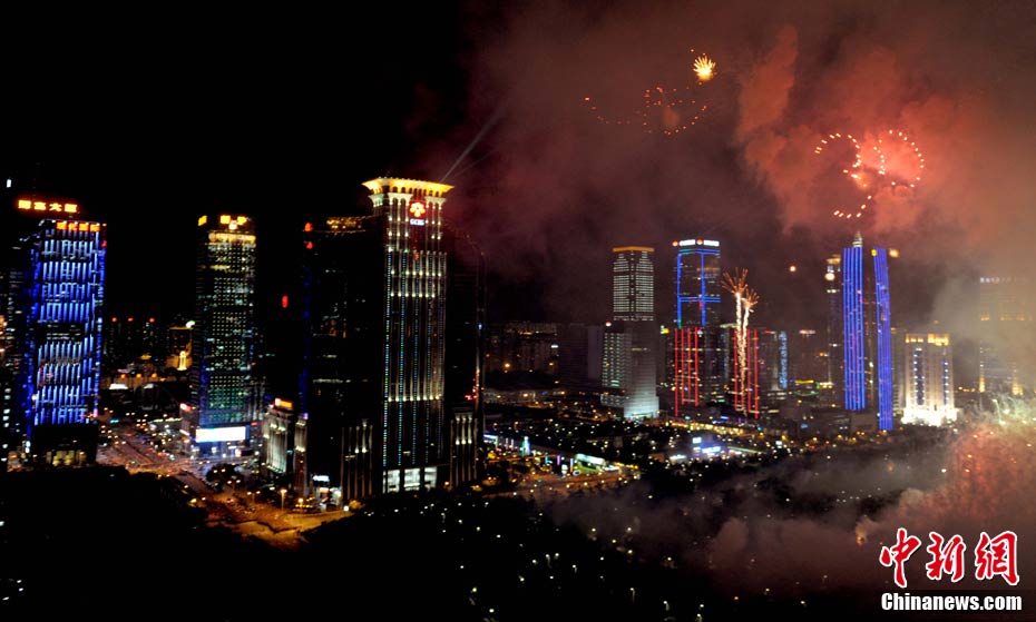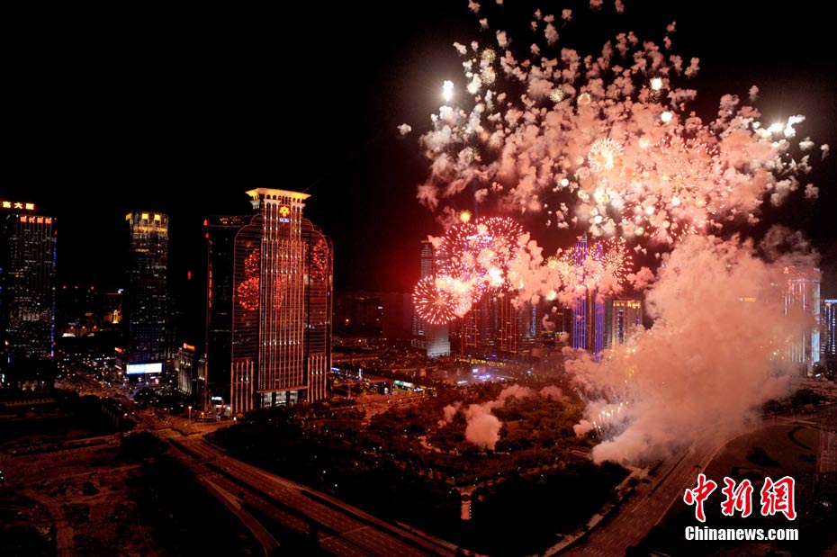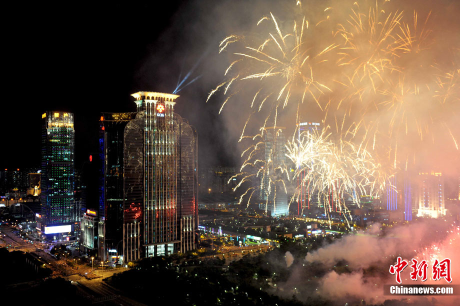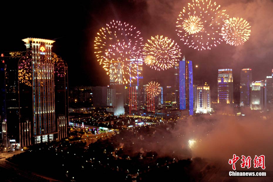 9月6日晚8點(diǎn)30分,深圳夜空璀璨絢麗,慶祝深圳經(jīng)濟(jì)特區(qū)建立30周年焰火晚會(huì)在深南大道水晶島舉行。今晚燃放煙花數(shù)量145107發(fā),主要品種19種,全長(zhǎng)30分鐘,共四個(gè)樂(lè)章。深圳市民分別在蓮花山公園、市民中心、深南路、彩田路、會(huì)展中心等區(qū)域觀看深圳經(jīng)濟(jì)特區(qū)30周年慶典煙花晚會(huì)。中新社記者 陳文 攝