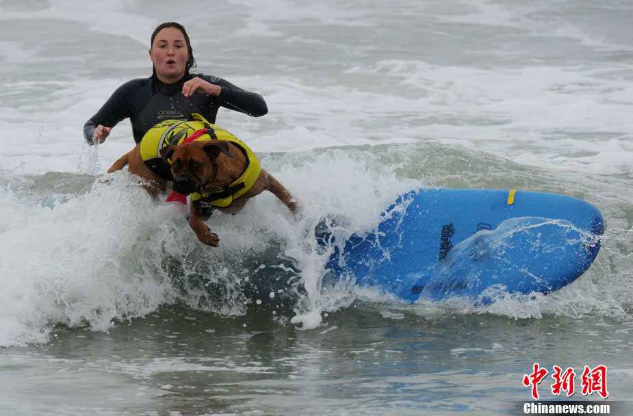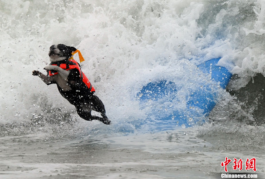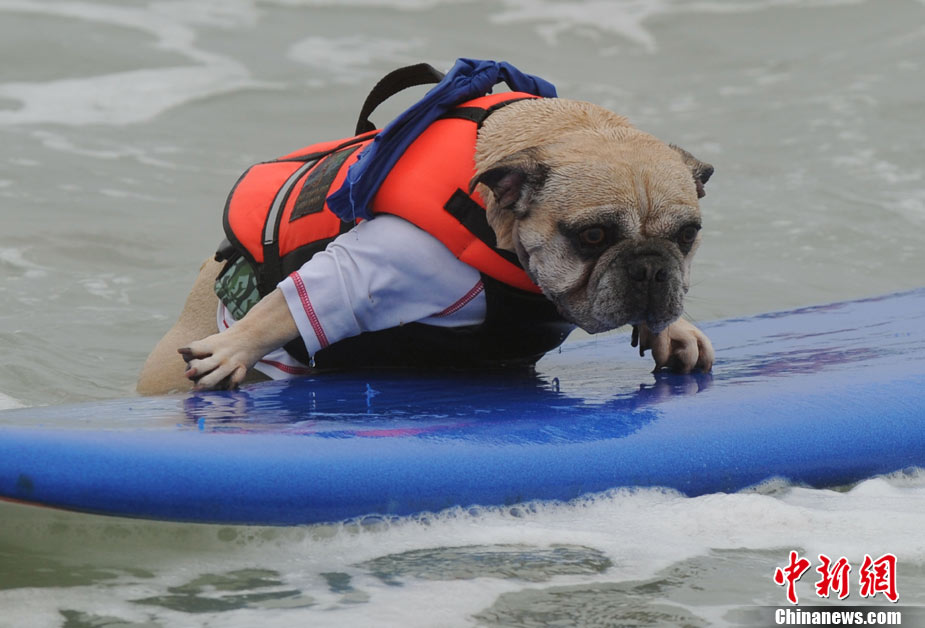 可愛狗狗扮沖浪高手 加州海灘競(jìng)技
