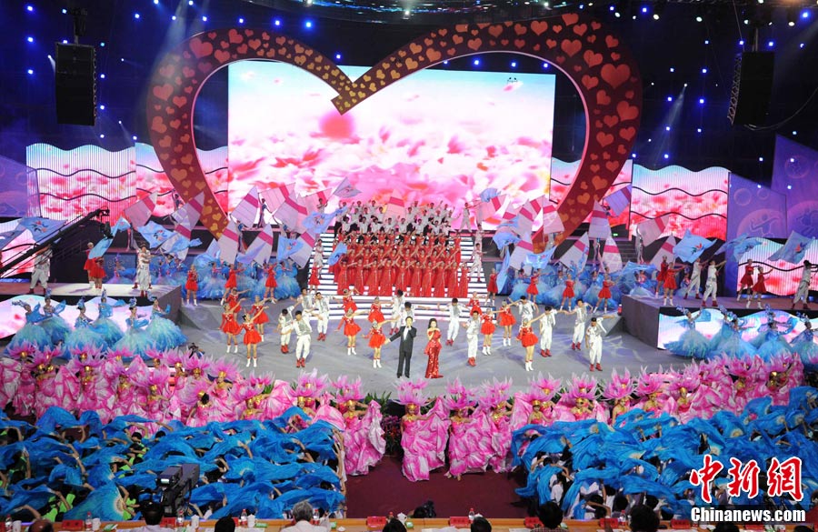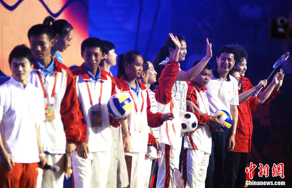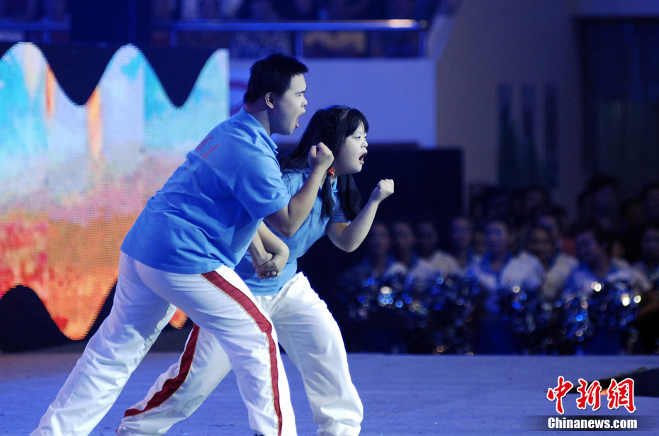 9月25日晚,第五屆全國特奧會(huì)閉幕式在福建省體育館舉行。閉幕式文藝晚會(huì)主題為“大愛無言”,分《感恩大地》《超越夢想》《激情永恒》3個(gè)篇章,共10個(gè)節(jié)目,包括歌舞、朗誦、真情傾訴、獨(dú)唱等,演出時(shí)間約60分鐘。 圖為閉幕式文藝演出。 中新社記者 劉可耕 攝