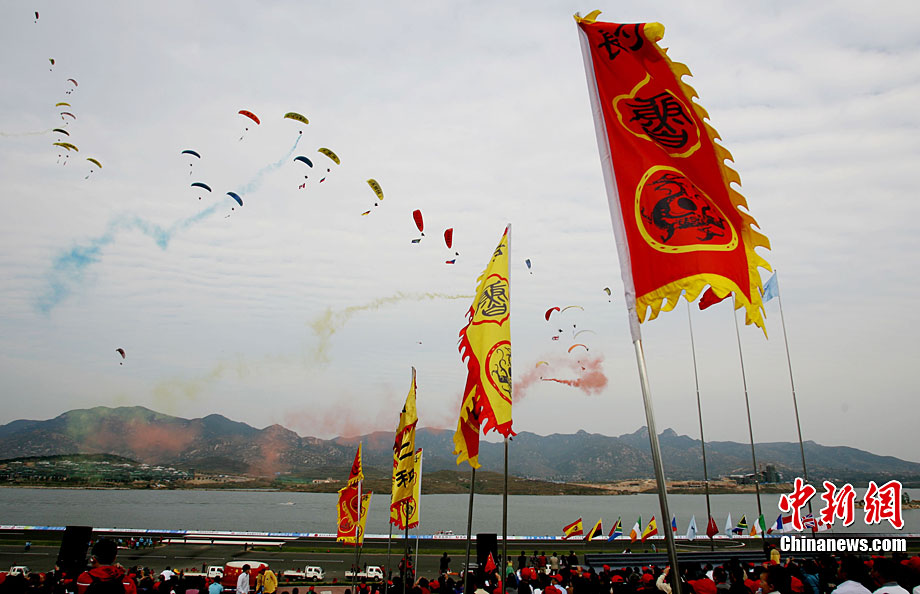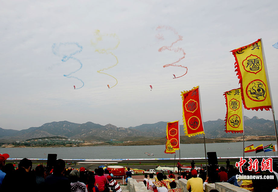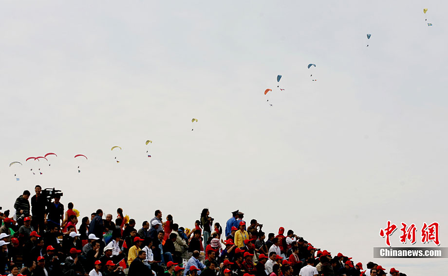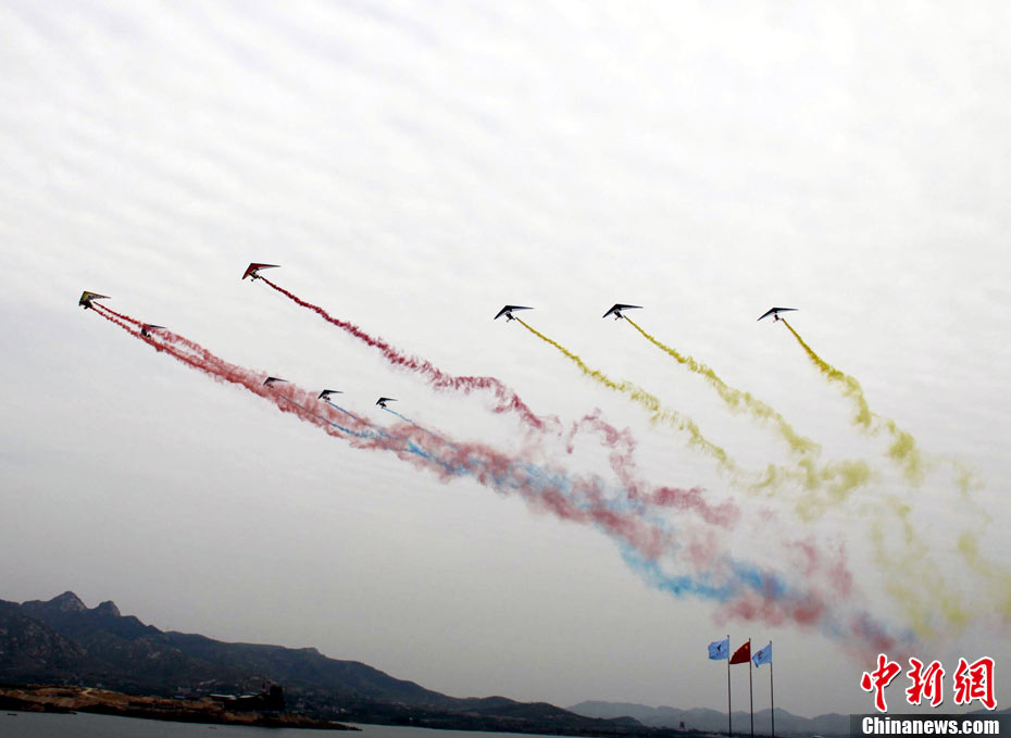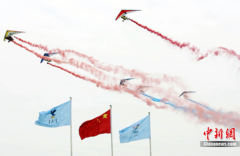 9月25日下午,2010中國(guó)國(guó)際航空體育節(jié)在山東省萊蕪市雪野旅游區(qū)拉開(kāi)帷幕。來(lái)自世界18個(gè)國(guó)家的700余名航空體育高手匯聚“航空運(yùn)動(dòng)之城”萊蕪,以天空為舞臺(tái),奉獻(xiàn)了一場(chǎng)精彩的航空體育盛會(huì)。圖為三角翼飛行器當(dāng)空舞彩練。 中新社發(fā) 馬圣泉 攝