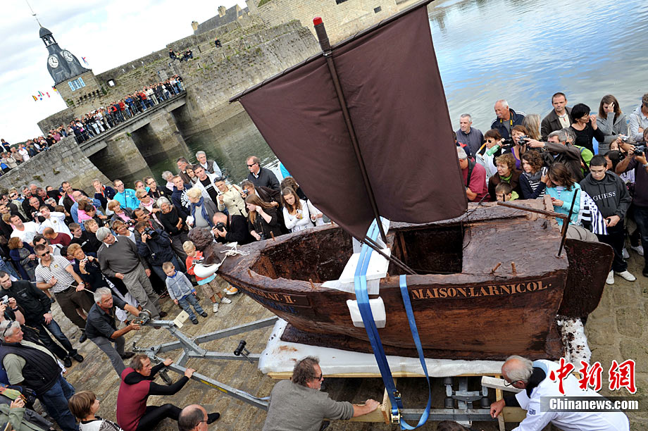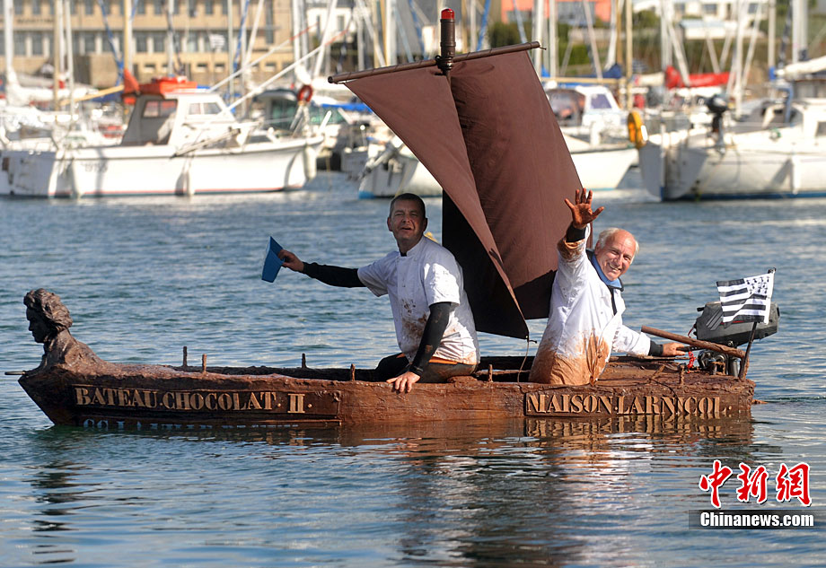 當?shù)貢r間9月25日,一艘用巧克力和冰糖制造的帆船在法國西北菲尼斯泰爾省的孔卡諾港下海試水,吸引不少居民和游客觀看。這艘巧克力帆船長3.5米、重1.2噸,由法國名匠設計。帆船的龍骨全部使用冰糖搭建,除風帆和發(fā)動機外,其他部分則使用巧克力做材料。當天,這只巧克力帆船載著制造者和一名乘客成功駛離孔卡諾港,在海上巡航數(shù)圈后安全返回,現(xiàn)場觀眾彩聲一片。