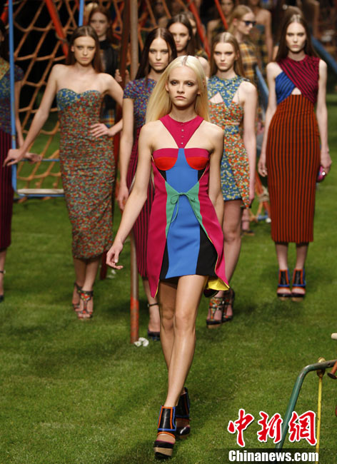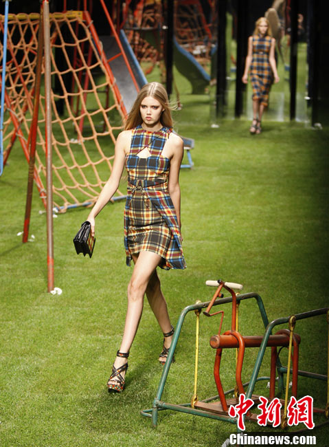 9月26日,在意大利米蘭舉行的2011米蘭春夏時(shí)裝周上,上演了一場(chǎng)“草地T臺(tái)秀”,眾多世界名模在綠地上絢麗登場(chǎng)。