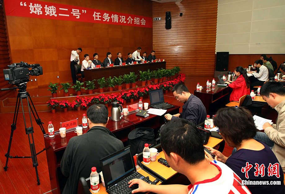 中國(guó)第二顆繞月探測(cè)衛(wèi)星——“嫦娥二號(hào)”,將于10月1日至3日在西昌衛(wèi)星發(fā)射中心擇機(jī)發(fā)射升空。9月30日下午,探月工程領(lǐng)導(dǎo)小組成員與記者見(jiàn)面。中新社記者 宋吉河 攝