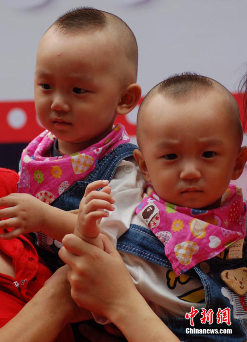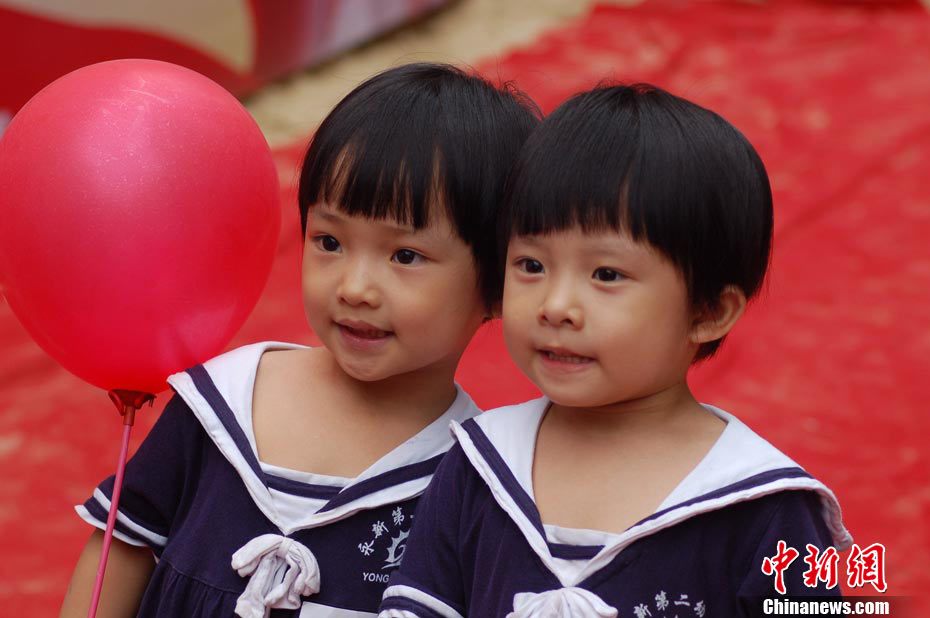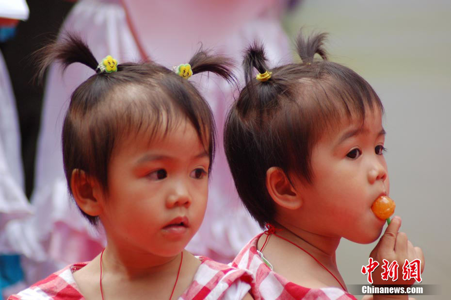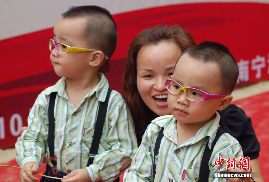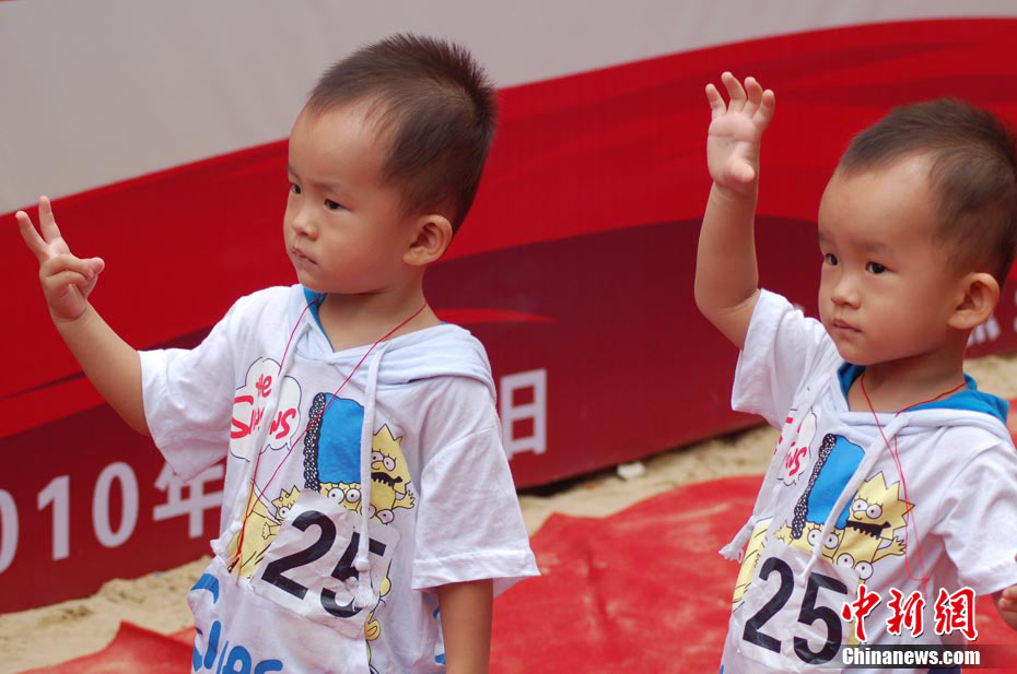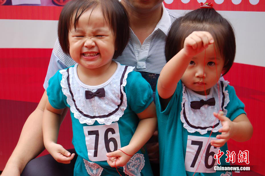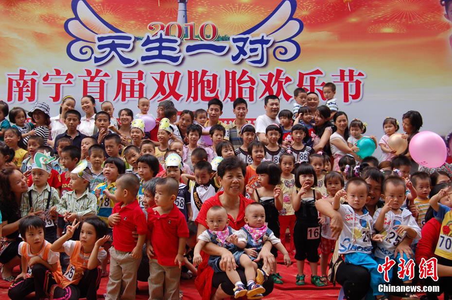 10月1日,國(guó)慶長(zhǎng)假第一日,70多對(duì)雙胞胎、三胞胎歡聚廣西南寧市人民公園,參加“南寧首屆雙胞胎歡樂節(jié)”,比拼相似度與默契程度。參加活動(dòng)的雙胞胎有長(zhǎng)得酷似李宇春、周迅、大小S等明星,引來眾多好奇目光。中新社記者 劉萬強(qiáng) 攝