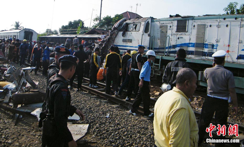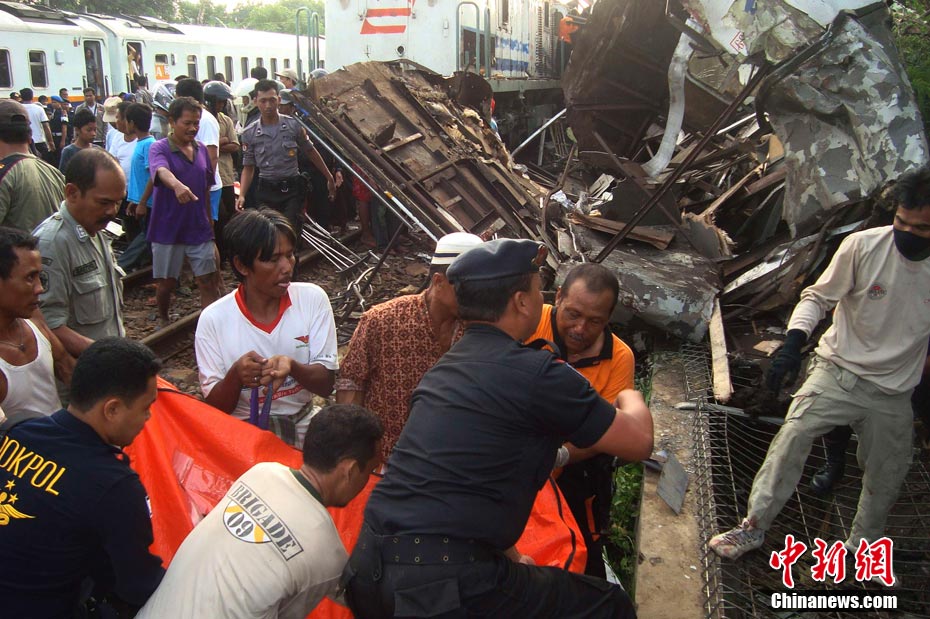 印尼中爪哇省2號發(fā)生火車相撞事故,至少已造成33人死亡。 事發(fā)在中爪哇北岸的珀塔魯坎,一列行駛中的列車,于凌晨約3點鐘,撞向一列停在車站內的列車,當時大部分人都在睡眠中,因此事故造成嚴重傷亡。