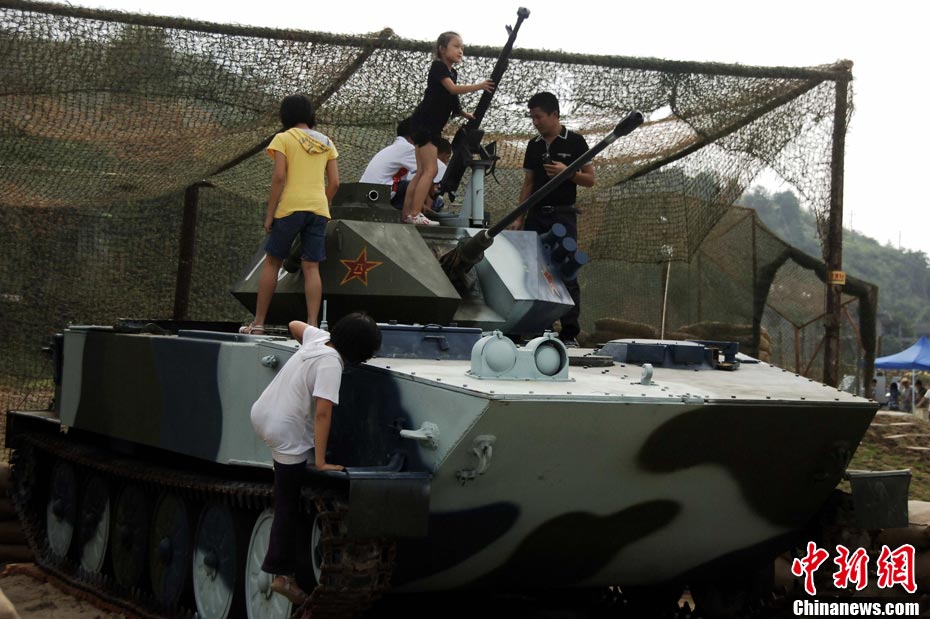 10月3日,福州游客到位于閩侯白沙灣的軍博園過把軍事癮。該軍博園濃縮薈萃了人民解放軍陸、海、空三軍的各類軍械裝備,其中還有經(jīng)歷實戰(zhàn)洗禮、屢獲戰(zhàn)功的功勛裝備。軍博園里還設(shè)置了軍事體驗項目,游客可以現(xiàn)場乘坐水陸兩用坦克,飛機駕駛室操縱、電動25海炮操作等等。