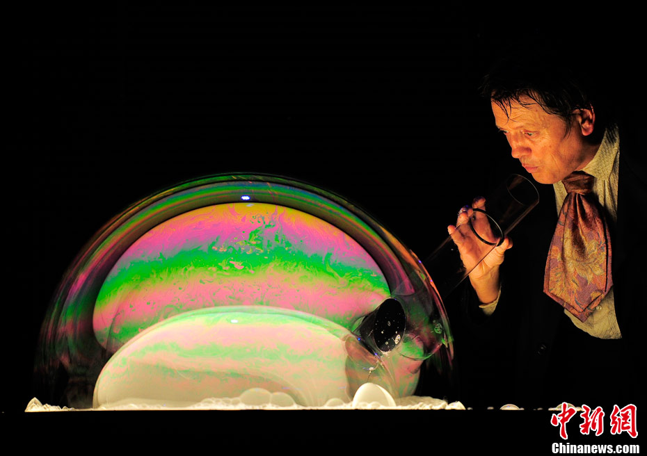 當(dāng)?shù)貢r間10月2日,西班牙肥皂泡魔術(shù)師佩普-布奧表演他的拿手好戲“泡泡秀”。