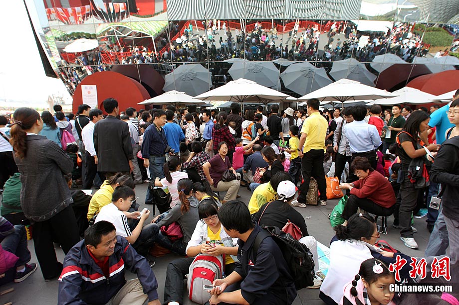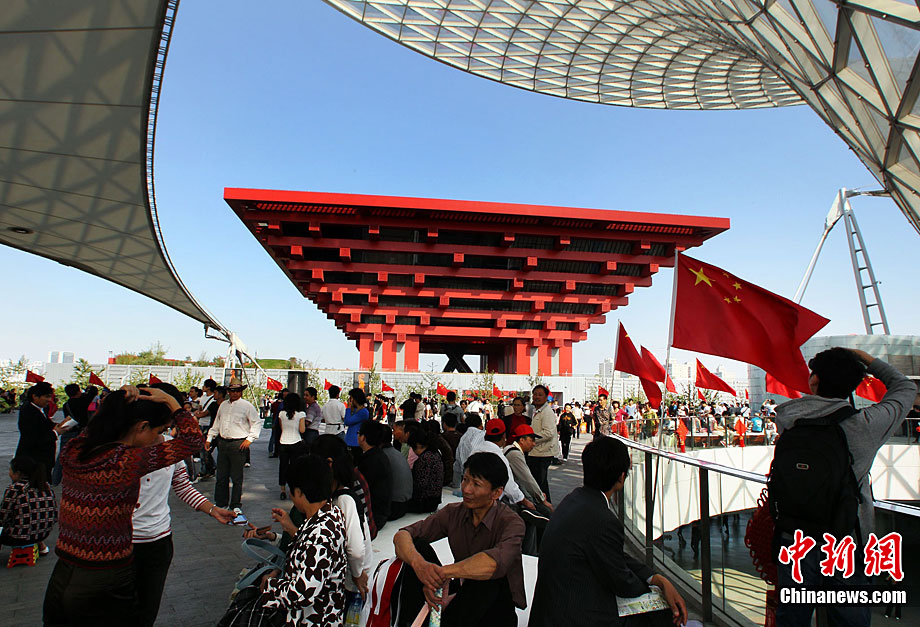 10月4日,上海風(fēng)和日麗,世博會(huì)入園人數(shù)持續(xù)上升。黃金周前三天,上海累計(jì)接待觀(guān)光游客407萬(wàn)人次,幾乎相當(dāng)于往年整個(gè)黃金周的接待量。目前,上海世博園區(qū)連續(xù)三天已接待游客超過(guò)100萬(wàn)人。中新社記者 任晨鳴 攝