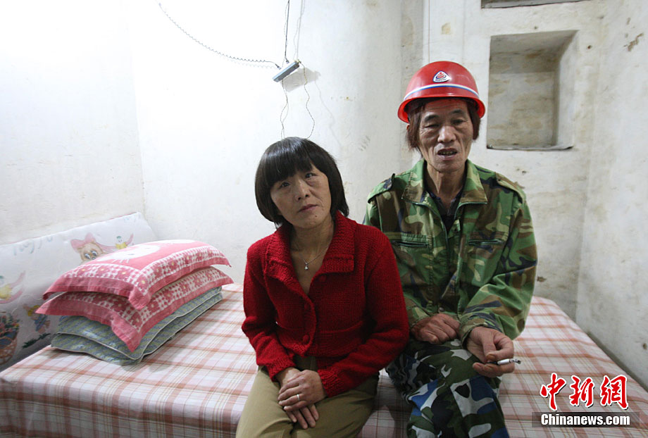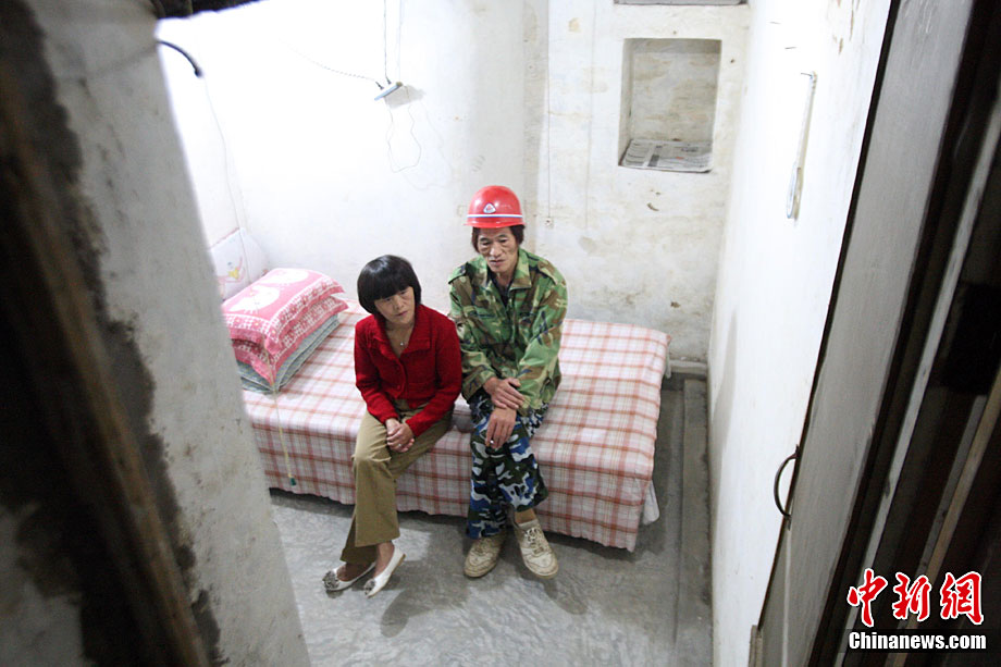 10月5日,河南鄭州,陳新年和妻子劉舒拉在自己的“地下標(biāo)間”里。劉舒拉表示自己和老伴都喜歡跳舞,保持良好的心態(tài)、快樂的生活,夫妻之間相互恩愛。64歲的陳新年,老家河南省太康縣,28歲時(shí)赴平頂山做礦工。4年來,陳新年發(fā)揮個(gè)人礦工特長在居住的棚戶地下6米處,挖了一個(gè)50平方米左右的地下室,包括一套十幾平方米大的標(biāo)間。中新社記者 王中舉 攝