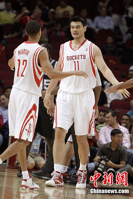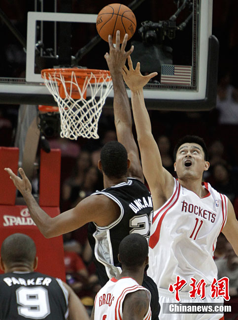 10月7日,美國(guó)休斯敦,10/11NBA季前賽,休斯敦火箭90-87圣安東尼奧馬刺。姚明上場(chǎng)12分48秒,8投2中得5分7個(gè)籃板,并有3次出色的蓋帽。
