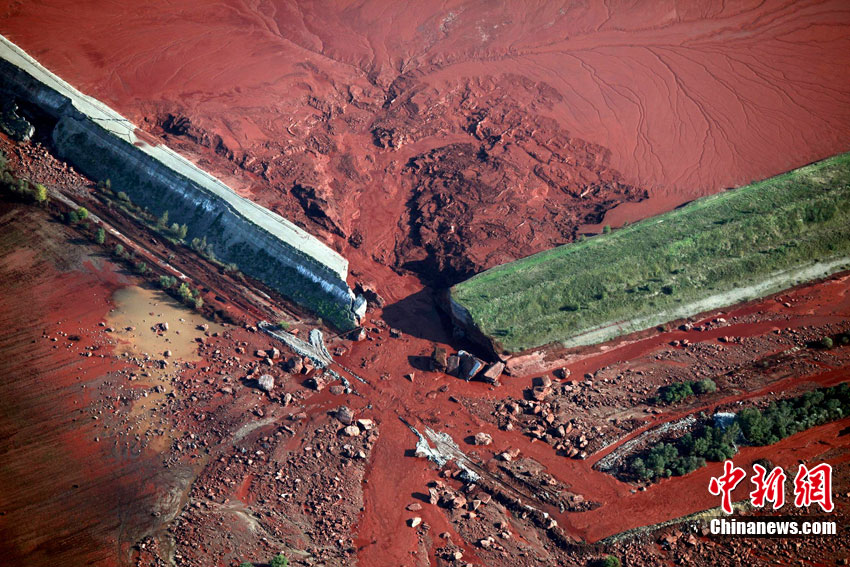 這張10月7日航拍的照片顯示,在匈牙利維斯普雷姆州奧伊考,鋁廠廢水池的堤壩毀壞,由此引發(fā)紅色有毒廢水泄漏。該鋁廠4日發(fā)生有毒廢水泄漏事故,目前已造成4人死亡,廢水7日上午流入多瑙河支流莫雄多瑙河。