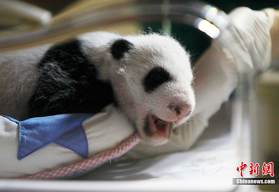 當(dāng)?shù)貢r(shí)間10月8日,西班牙馬德里動(dòng)物園出生的兩只人工受精的大熊貓幼崽第一次向媒體亮相。這對(duì)雙胞胎均為雄性,9月7日出生時(shí)他們的體重只有5盎司(141.5克)。經(jīng)過不斷的護(hù)理,它們現(xiàn)在體重已超過1公斤,并可以向媒體亮相了。