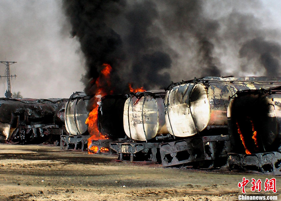 10月9日,北約一個(gè)運(yùn)輸車(chē)隊(duì)在巴基斯坦西南部俾路支省首府奎達(dá)東南約200公里處遭到武裝分子襲擊,至少29輛油罐車(chē)被燒毀。