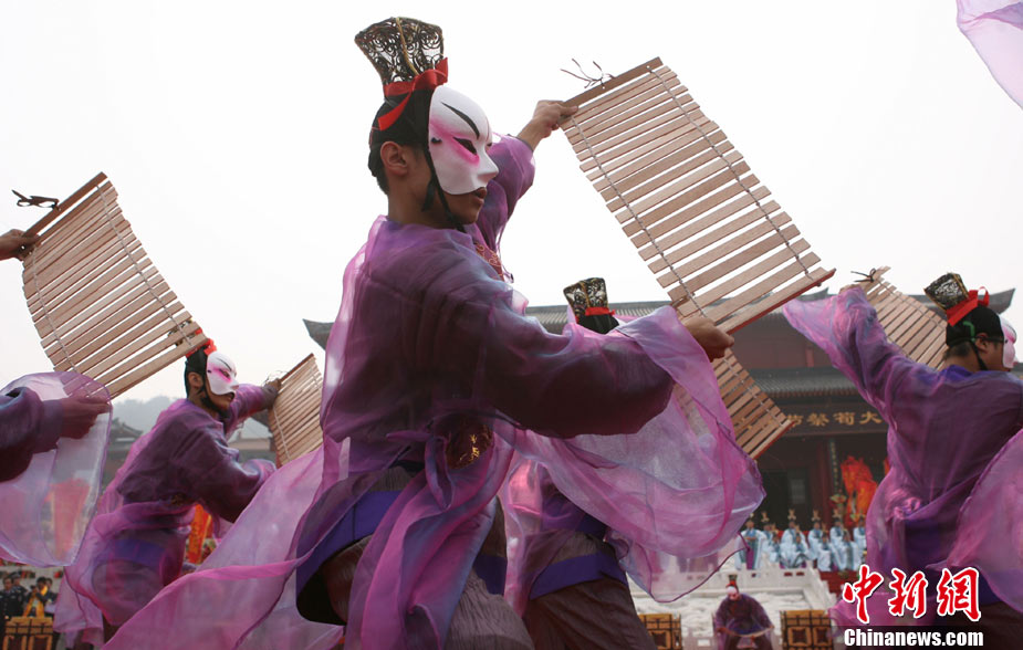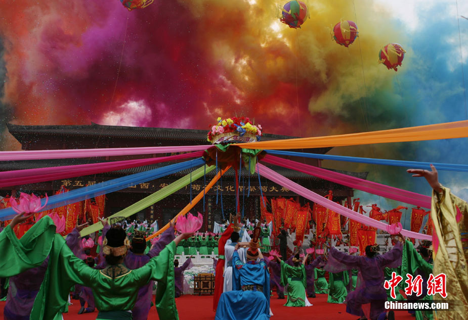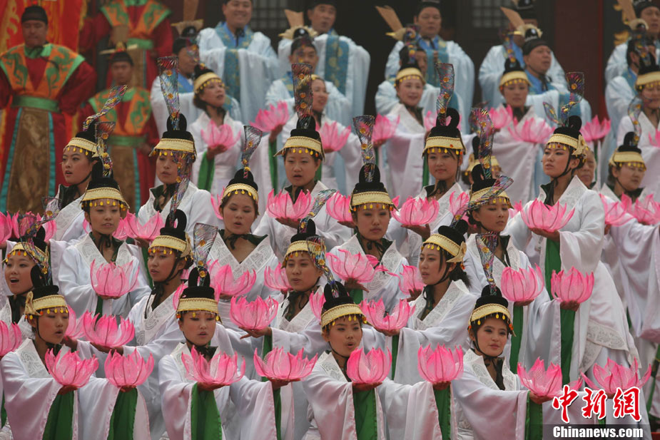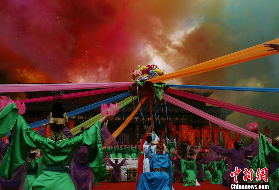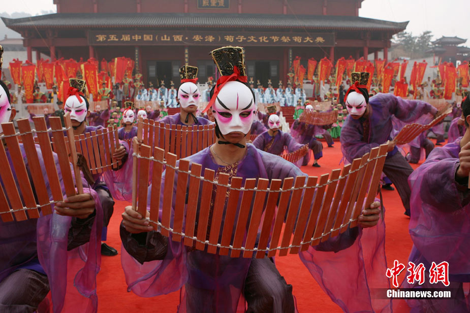 10月10日,演員在祭荀大典上表演戰(zhàn)國風(fēng)格的舞蹈。當(dāng)日,第五屆中國荀子文化節(jié)開幕式暨祭荀大典在荀子故里山西省安澤縣舉行。包括10國駐華大使在內(nèi)的數(shù)千名海內(nèi)外人士參加了此次大典。中新社發(fā) 蘇丹 攝