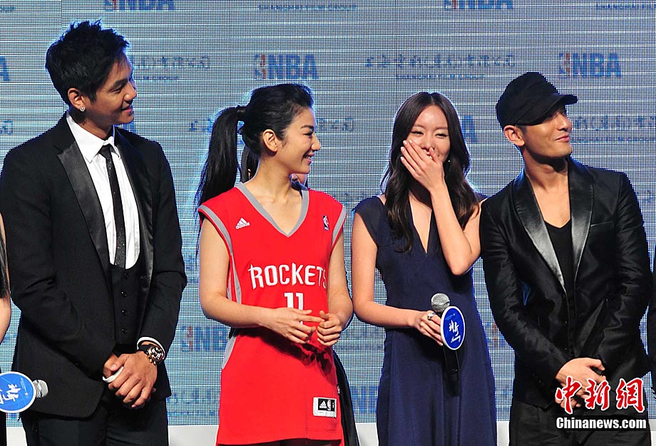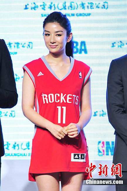 10月12日,上海電影集團(tuán)聯(lián)手美國職業(yè)籃球協(xié)會(huì)(NBA)在京召開發(fā)布會(huì),共同揭曉首部本土制作的NBA題材電影《神奇Amazing》的全明星陣容,六屆NBA冠軍得主科特·皮蓬、中國著名籃球明星易建聯(lián)、NBA全明星球員效力于奧蘭多魔術(shù)隊(duì)的德懷特·霍華德、丹佛掘金隊(duì)的卡梅羅·安東尼、現(xiàn)中國男子籃球隊(duì)球員王治郅等多名籃球明星,以及來自兩岸三地的人氣明星黃曉明、馮德倫、陳建州(黑人)、黃奕,以及韓國女星金雅中,美國男星埃里克·馬布斯將聯(lián)手出演影片。圖為在片中飾演拉拉隊(duì)長(zhǎng)的黃奕身著鮮紅色火箭隊(duì)姚明11號(hào)球衣驚艷亮相。中新社記者 李學(xué)仕 攝