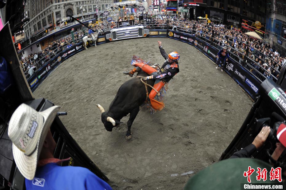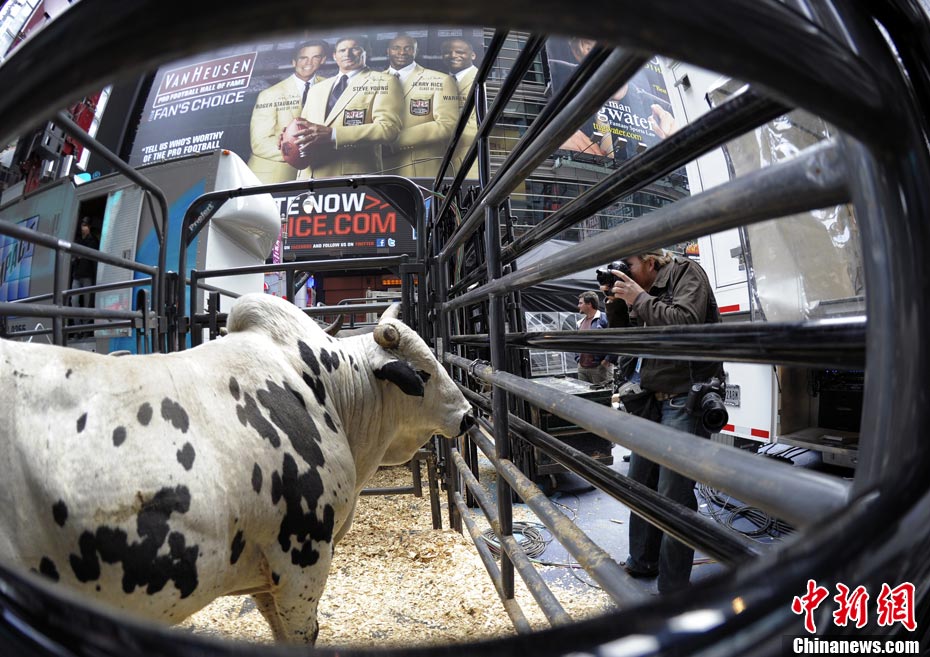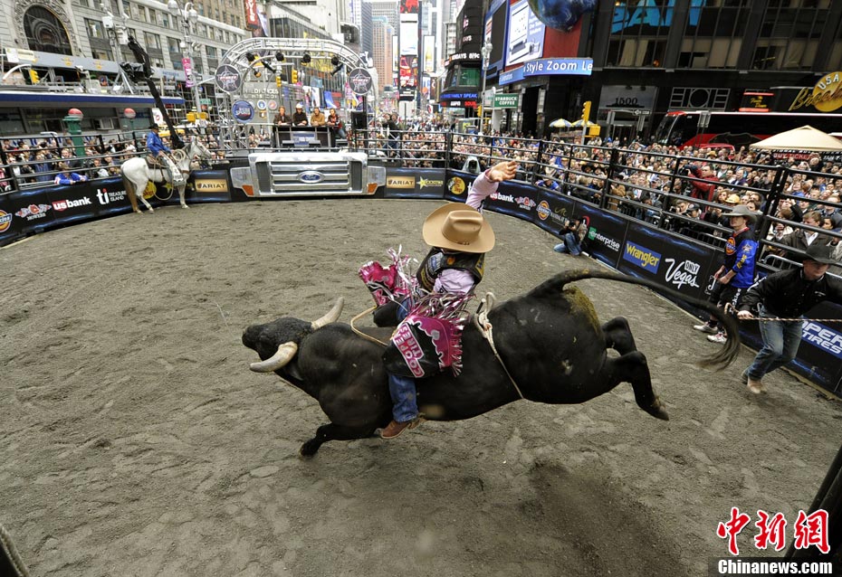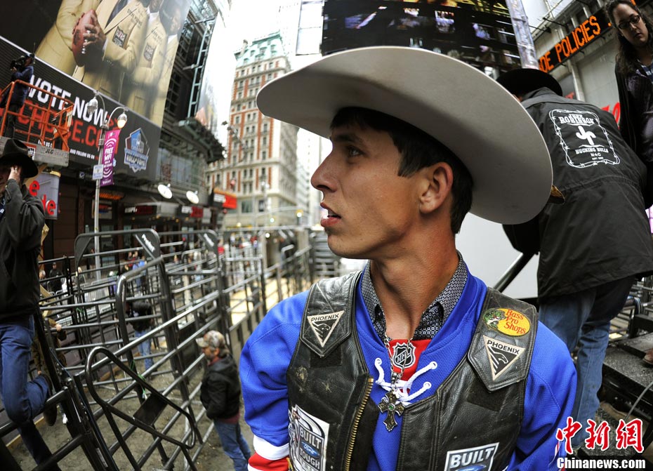 當(dāng)?shù)貢r(shí)間10月15日,10名美國職業(yè)騎牛大賽的頂尖選手在紐約時(shí)報(bào)廣場上演了一場精彩的騎牛大賽,為將于10月20日至24日在美國拉斯維加斯舉行的2010職業(yè)騎?倹Q賽造勢。