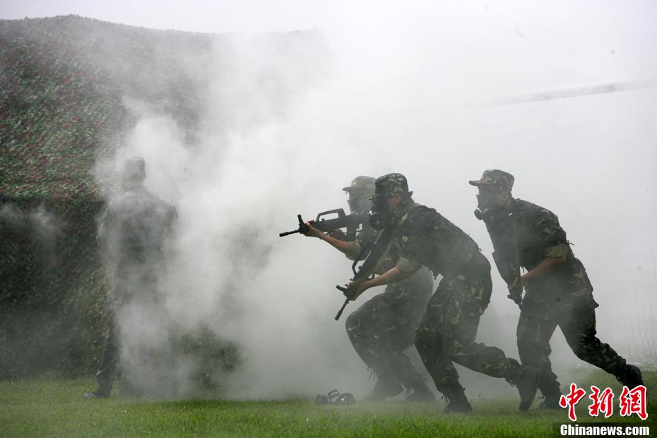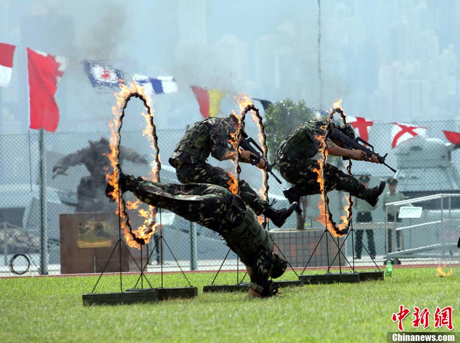 10月16日,中國(guó)人民解放軍駐港部隊(duì)特種兵在香港昂船洲海軍基地進(jìn)行“獵人戰(zhàn)斗”演練,展示過硬的搏擊功夫。當(dāng)天,駐軍與香港各大院校大學(xué)生聯(lián)誼活動(dòng),以各種形式相互交流,增進(jìn)香港學(xué)生對(duì)國(guó)家的了解。 中新社發(fā) 洪少葵 攝