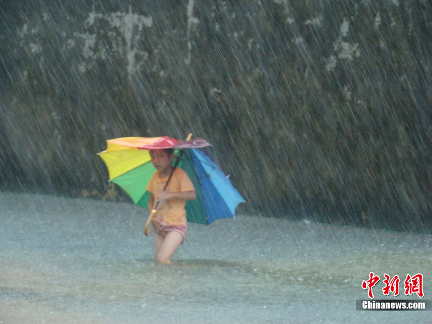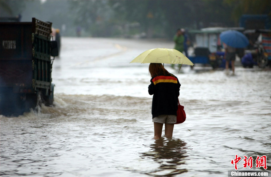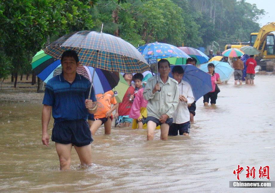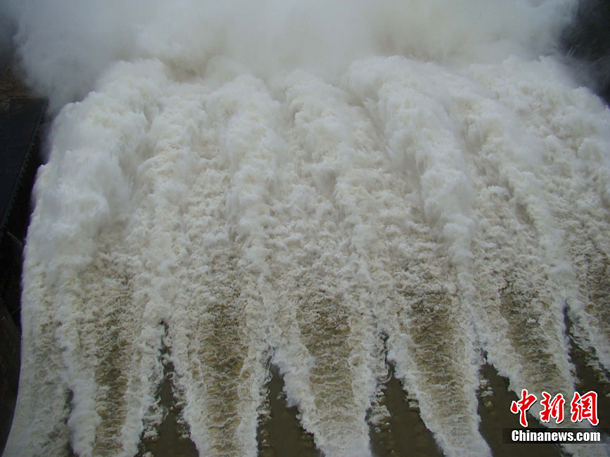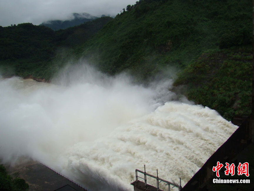 10月16日9時(shí),受持續(xù)強(qiáng)降雨影響,瓊海市牛路嶺水庫最高水位達(dá)105.16米,超過防洪限制水位105米,牛路嶺水庫水電站打開7個(gè)閘門,以每秒3000立方米流量泄洪到萬泉河。當(dāng)日上午,瓊海市政府緊急將萬泉河沿岸7鄉(xiāng)鎮(zhèn)群眾緊急轉(zhuǎn)移。中新社發(fā) 付美斌 攝