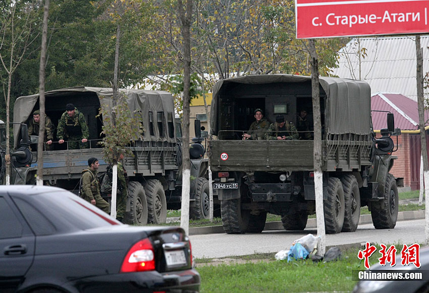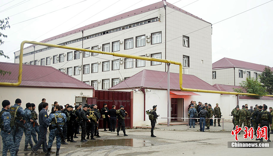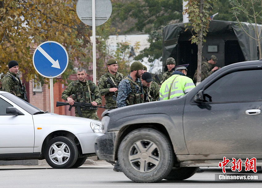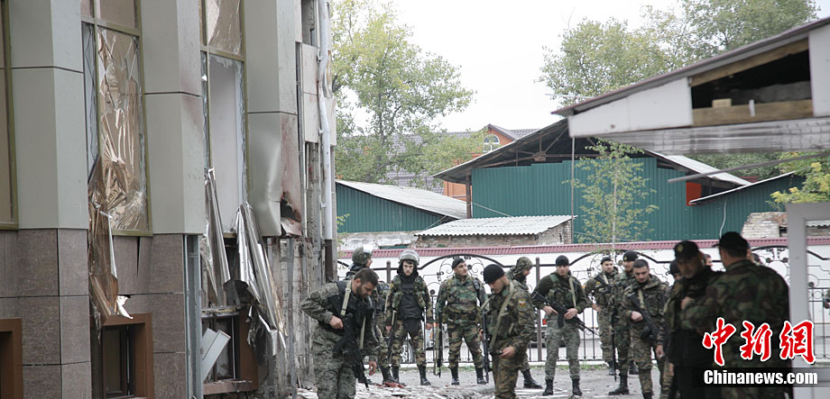 當(dāng)?shù)貢r(shí)間10月19日,俄羅斯車臣共和國(guó)首府格羅茲尼市列寧區(qū)的車臣議會(huì)大樓遭到武裝分子襲擊,造成2人死亡。圖為安全部隊(duì)在消滅完襲擊份子后,準(zhǔn)備撤離議會(huì)大樓。