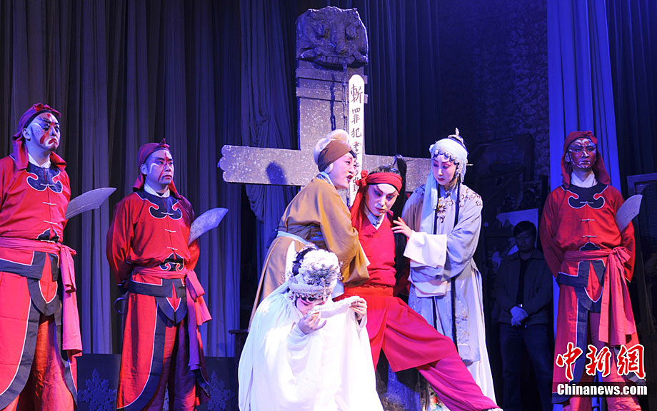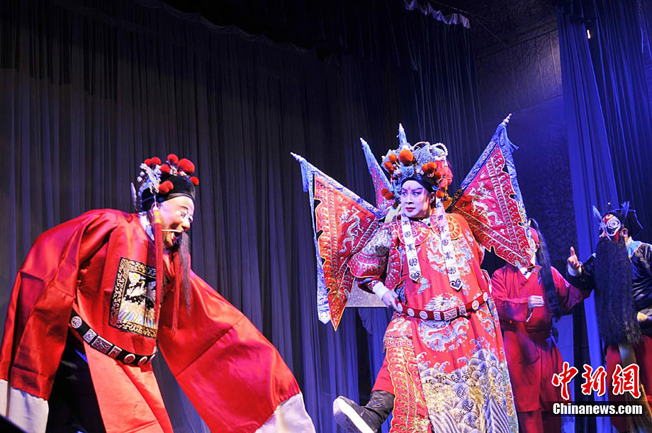 10月18日至22日,甘肅秦劇團(tuán)到基層為鄉(xiāng)下人唱“大戲”,演員們唱念做打演,招招真功夫給鄉(xiāng)親們送來了一場場戲曲大餐。《三滴血》、《火焰駒》、《竇娥冤》等演出,一出出膾炙人口的傳統(tǒng)劇目風(fēng)格各異,精彩紛呈,鄉(xiāng)親們在一次次的情節(jié)跌宕中笑聲不止、掌聲不斷。秦腔又稱亂彈,源于西秦腔,流行于中國西北的陜西、甘肅、青海、寧夏、新疆等地,又因其以棗木梆子為擊節(jié)樂器,所以又叫“梆子腔”,俗稱“桄桄子”,經(jīng)國務(wù)院批準(zhǔn)列入第一批國家級非物質(zhì)文化遺產(chǎn)名錄。楊艷敏 攝