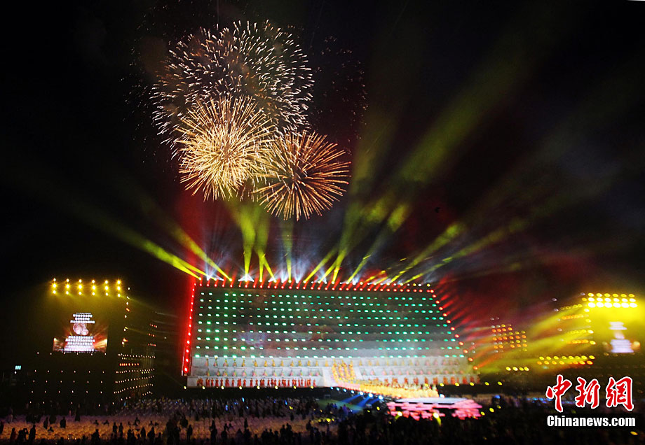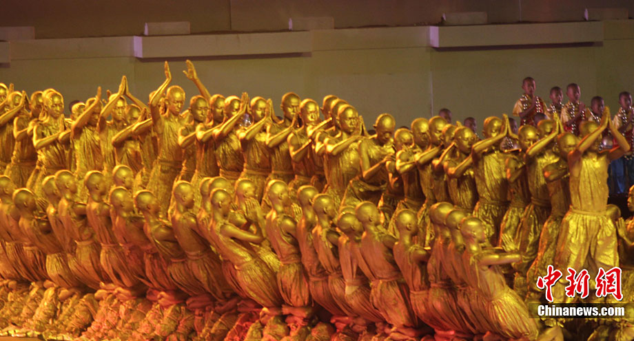 10月22日晚,“金身和尚”在國際少林武術(shù)節(jié)開幕式上表演。當(dāng)日,第八屆中國鄭州國際少林武術(shù)節(jié)在鄭州開幕。來自美國、法國、日本、及港澳臺等近60個國家和地區(qū)的1200名選手將在武術(shù)節(jié)期間同臺競技。中新社記者 王中舉 攝