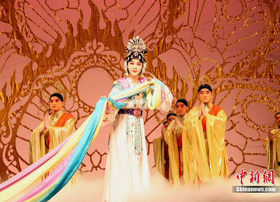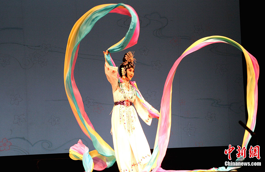 10月22日至11月9日,泰州舉行梅蘭芳藝術(shù)節(jié),旨在弘揚(yáng)優(yōu)秀傳統(tǒng)文化,振興京劇藝術(shù),擦亮泰州特色文化品牌,改善文化民生,提升城市形象,建設(shè)文化泰州。期間15項(xiàng)主要活動精彩紛呈,有《貴妃醉酒》等國粹京劇名家名段,有《臘雷月》等耳熟能詳淮揚(yáng)小戲,有《飄逸的紅紗巾》等現(xiàn)代京劇經(jīng)典,也有“梅蘭春杯”戲曲票友大獎賽、“百姓大舞臺”地方風(fēng)情文藝節(jié)目展演等群眾性演出,讓廣大戲迷和泰州市民盡享一系列精神文化盛宴。圖為梅葆玖弟子譚茗心獻(xiàn)藝,演出《天女散花》劇目。中新社記者 崔佳明 攝