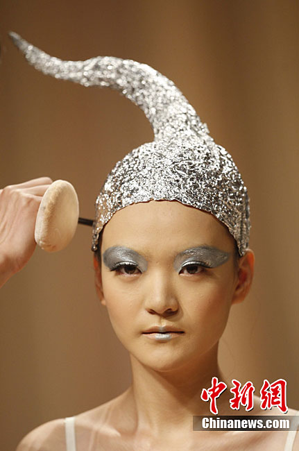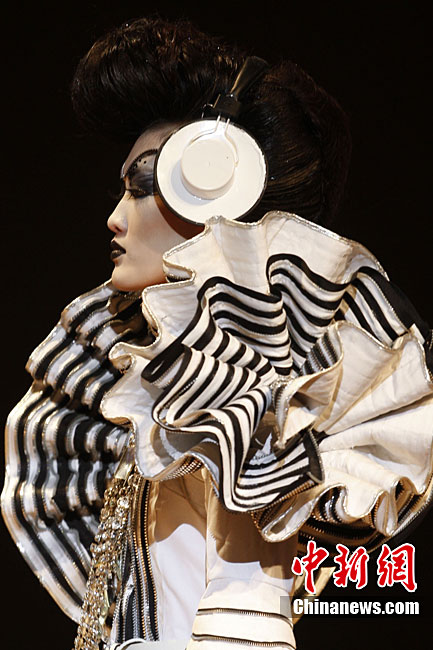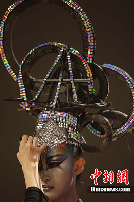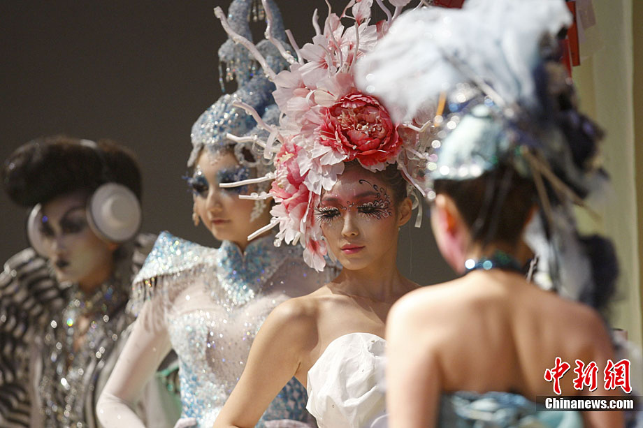 10月25日晚,第六屆“美麗盛典”中國國際時裝周彩妝造型設(shè)計大賽在北京798藝術(shù)區(qū)舉行。本屆“美麗盛典”大賽以“都市”為主題,來自中國和韓國的12位造型師與36位模特合作展示了精彩彩妝造型。中新社記者 盛佳鵬 攝