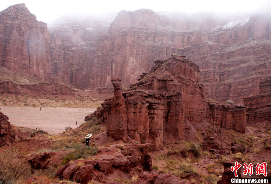 溫宿大峽谷是中國西部最美的丹霞地質(zhì)奇景、中國最大的巖鹽喀斯特地質(zhì)勝景。這里有中國罕見的遠古巖鹽地質(zhì)絕景、中國西部奇特的雅丹地質(zhì)怪景、中國獨有的巨型巖溶蝕地質(zhì)秘境,堪稱新疆“活的地質(zhì)演變史博物館”。溫宿大峽谷主要由庫都魯克谷、阿奇克蘇谷兩條巨大蜿蜒的峽谷組成,其間分布有千余條形態(tài)各異的支谷,旅游觀光區(qū)域達到了200余平方公里,喀斯特地貌、丹霞地貌、雅丹地貌、次雅丹地貌、鹽丘底劈構(gòu)造地貌分布在峽谷之中,其地質(zhì)構(gòu)造的多樣性、復(fù)雜性和人文景觀的獨特性極具視覺沖擊力。中新社記者 趙雋 攝