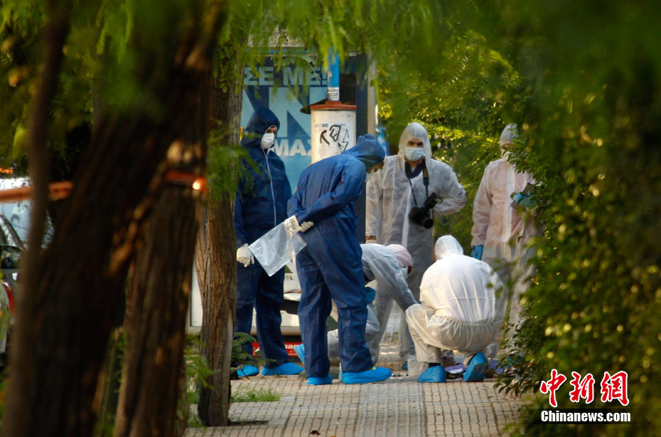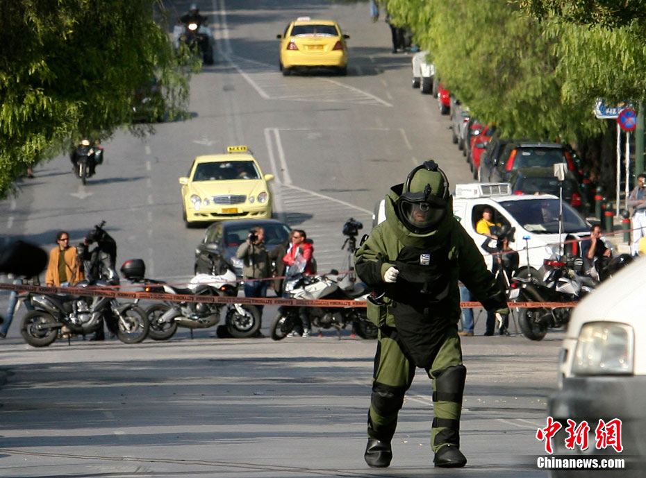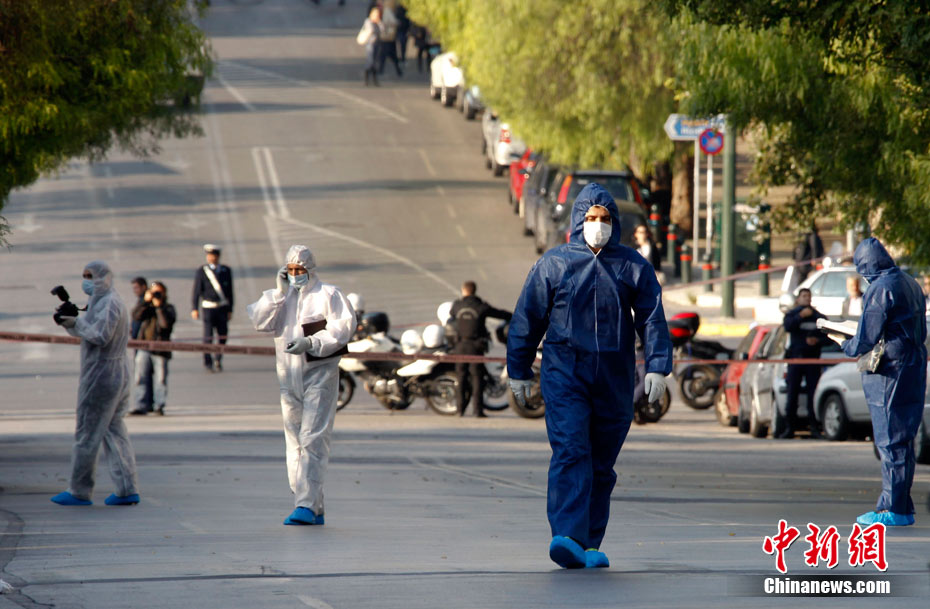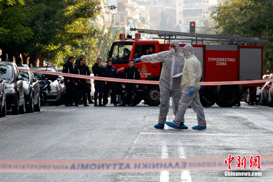 希臘警方1日下午宣布,當(dāng)日在雅典市中心發(fā)現(xiàn)的多個郵包炸彈中,其中一個是寄給法國總統(tǒng)薩科齊的。當(dāng)天早些時候,一個郵包炸彈在雅典市中心的一家郵局爆炸,一名女工作人員手部受傷。包裹接收人為墨西哥駐希臘使館。 圖為爆炸事件發(fā)生后,希臘警方封鎖了發(fā)生爆炸事件的郵局及周邊地區(qū)。