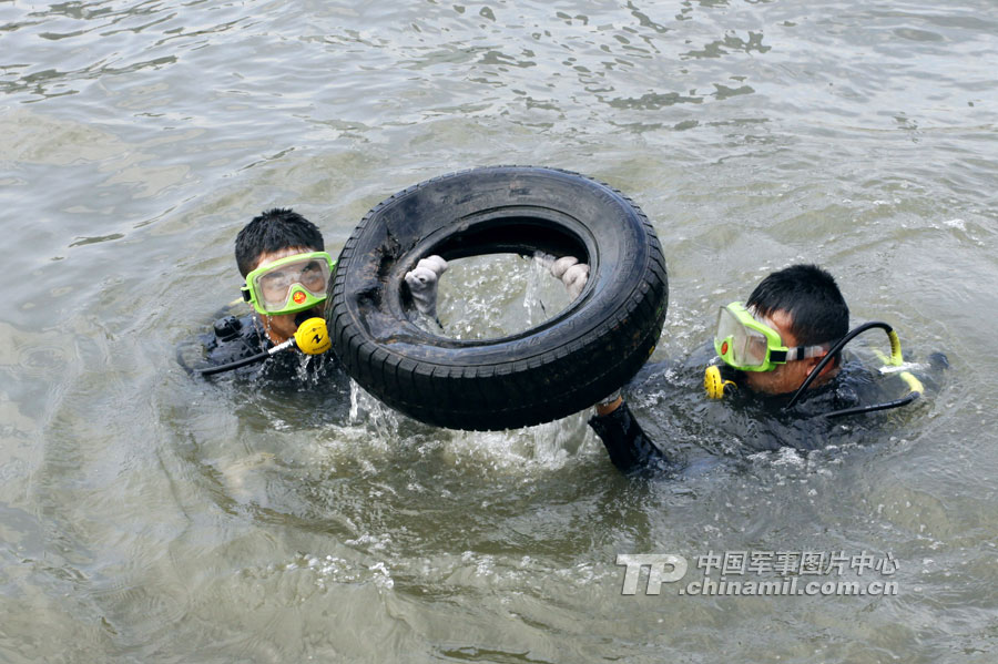 “水下就是戰(zhàn)場,安檢就是打仗”、“不怕流血流汗,確保水下安檢萬無一失!边@是蛙人官兵們的共同心聲。