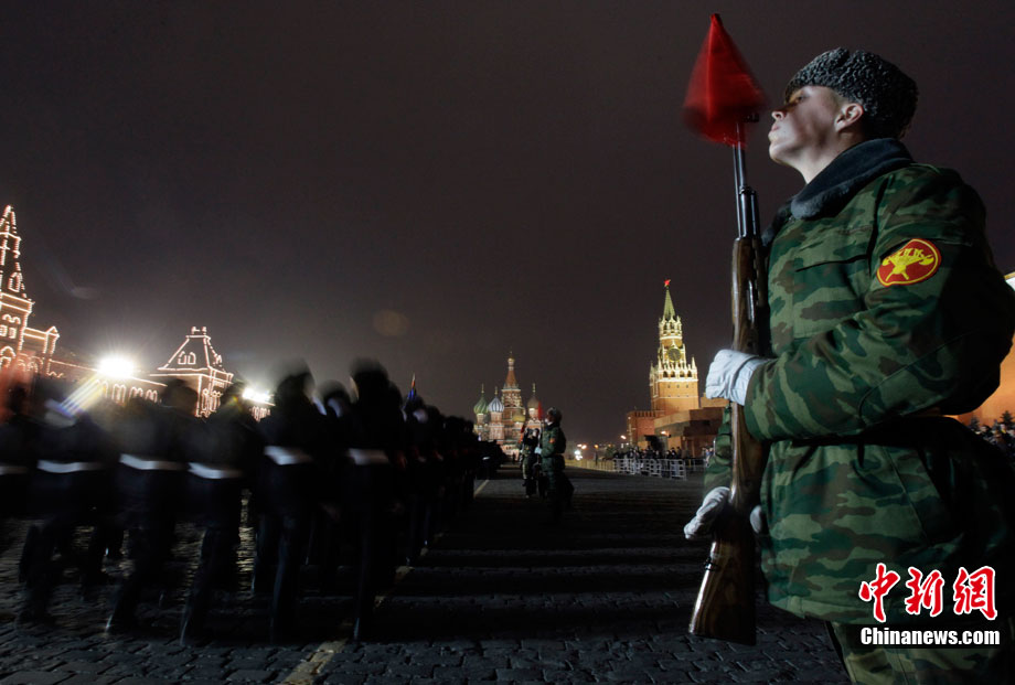 11月3日,準(zhǔn)備參加紅場閱兵的士兵在俄羅斯首都莫斯科進(jìn)行彩排。11月7日俄羅斯將在莫斯科紅場舉行盛大閱兵儀式,紀(jì)念1941年11月7日的紅場閱兵69周年。