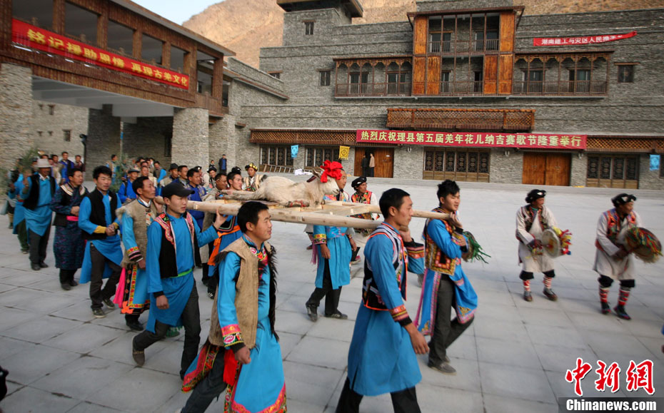 11月6日,四川汶川數(shù)千民眾穿著盛裝跳起羊皮鼓舞,歡度災(zāi)后重建基本完成后的第一個羌歷新年。羌歷年是羌族最重要的傳統(tǒng)節(jié)日,時間是每年的農(nóng)歷十月初一,羌族人通常用祭祀、唱酒歌、跳鍋莊舞等活動慶祝這一節(jié)日。