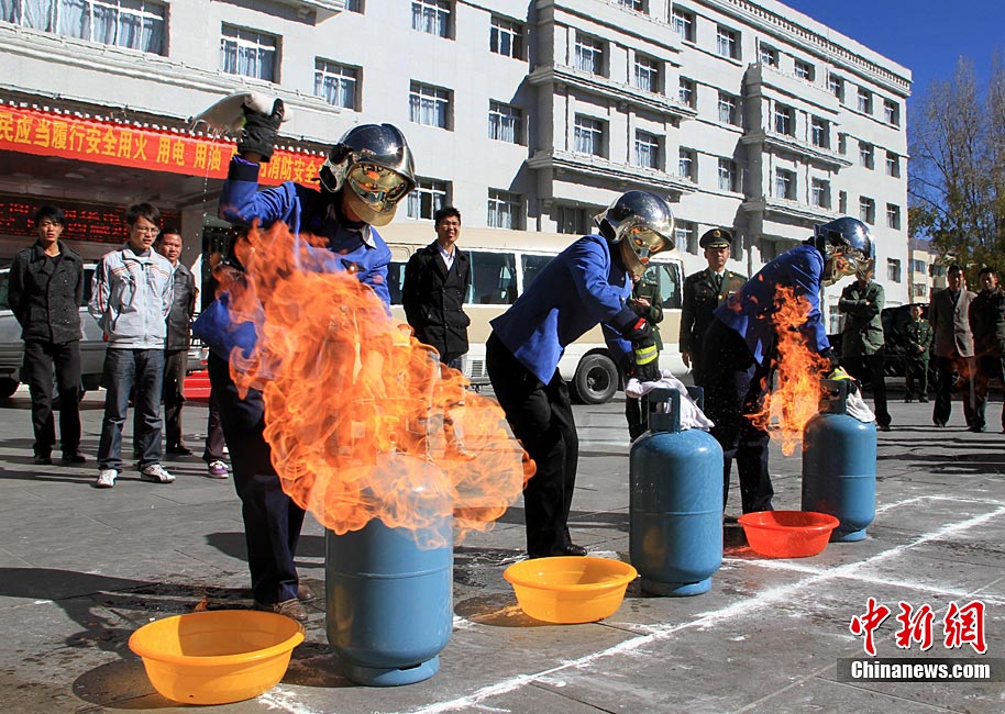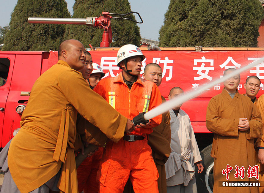在第20個“11.9”全國消防日前夕,11月7日,山東省棗莊市公安消防部門針對寺廟用火、用電增多,火災風險不斷增大的實際情況,在轄區(qū)開展了消防“進寺廟”宣傳活動,讓寺廟的僧眾掌握基本消防知識,提高消防意識。今年全國“消防日”宣傳活動的主題是“全民關注消防·生命安全至上”。季龍 攝 圖片來源:CNSPHOTO