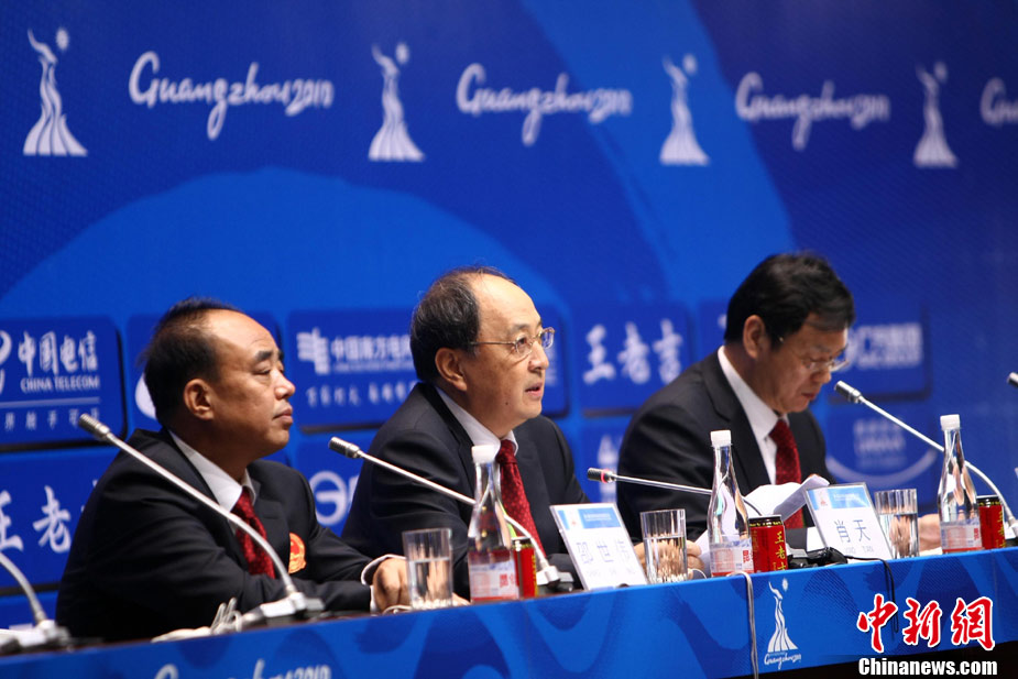 11月10日,中國體育代表團(tuán)新聞發(fā)布會在亞運主媒體中心一號新聞廳召開。中國體育代表團(tuán)副團(tuán)長肖天就目前媒體記者關(guān)注的問題做了回答。 中新社記者 杜洋攝