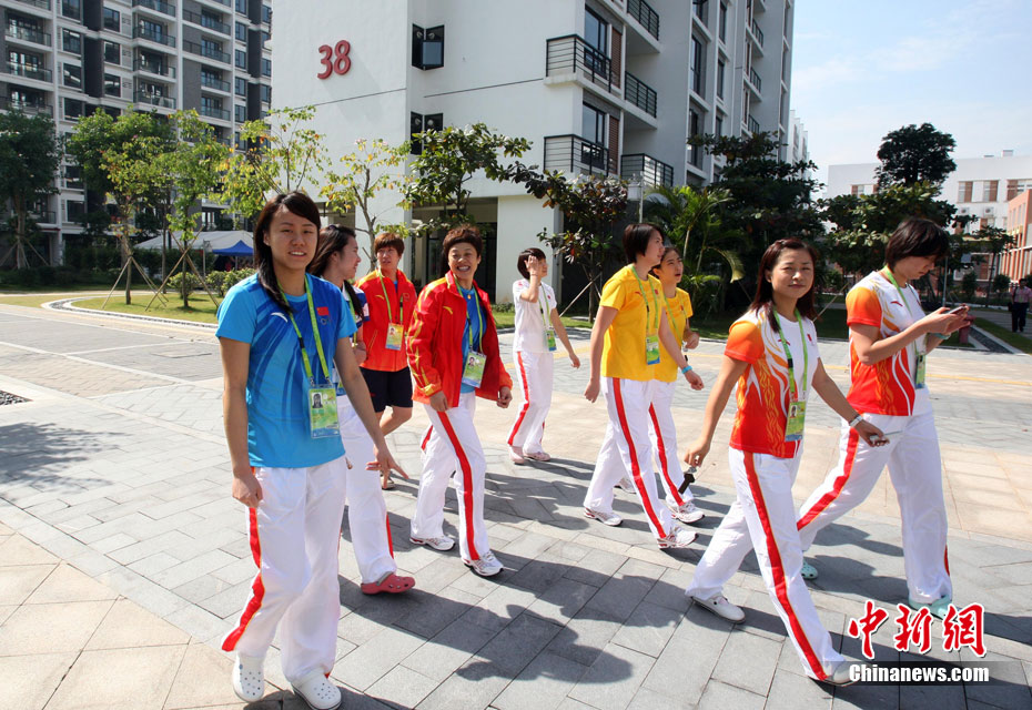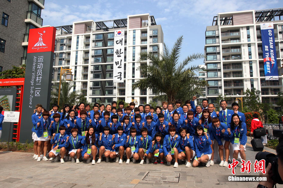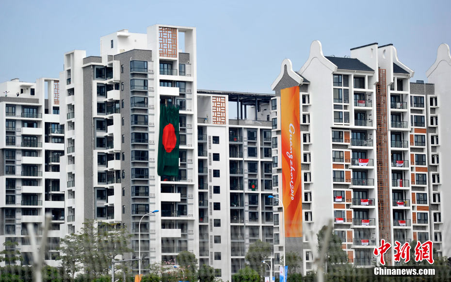 和歷屆亞運(yùn)會(huì)不同,廣州亞運(yùn)會(huì)沒有延續(xù)“亞運(yùn)村”的概念,而是打造了一座亞運(yùn)城,而運(yùn)動(dòng)員村則是亞運(yùn)城的核心。運(yùn)動(dòng)員村位于亞運(yùn)城內(nèi),總建筑面積59.1332萬平方米。運(yùn)動(dòng)員村共有49棟公寓樓、3598套公寓、9272間客房。應(yīng)該說,運(yùn)動(dòng)員村是一個(gè)高度專業(yè)化、集約化和規(guī)范化的居住區(qū)域,這里將為運(yùn)動(dòng)員及隨隊(duì)官員提供住宿分配、客房、洗衣、布草洗滌、居民服務(wù)中心等住宿服務(wù),全部是一條龍服務(wù)。圖為運(yùn)動(dòng)員公寓外景,不少運(yùn)動(dòng)員將自己國家的國旗懸掛在窗外。中新網(wǎng)記者 金碩 攝