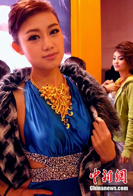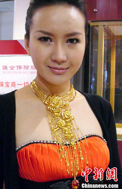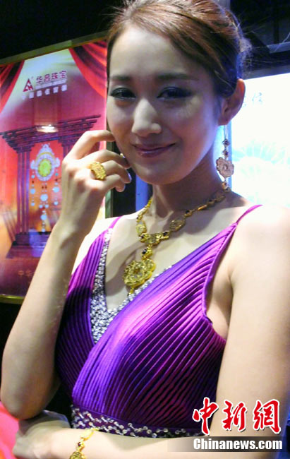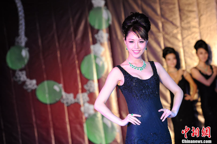 11月11日,2010中國國際珠寶展在北京中國國際展覽中心開幕,本屆展會(huì)規(guī)模42000平方米,近2000個(gè)展位,有來自22個(gè)國家和地區(qū)的961家企業(yè)參展,展覽面積比去年同期擴(kuò)大了40%。圖為2010中國國際珠寶展上模特展示珠寶首飾。中新社記者 錢興強(qiáng) 攝