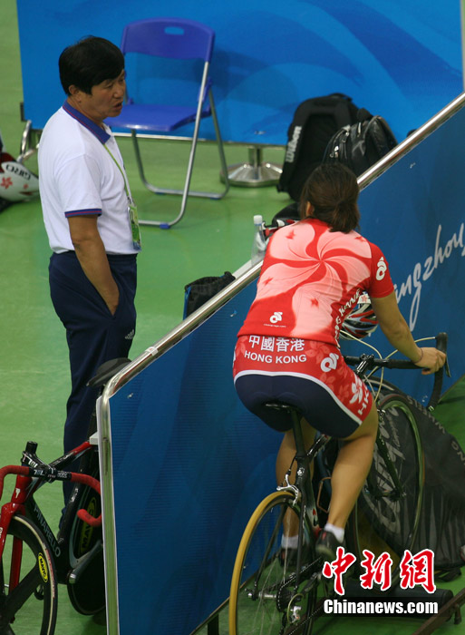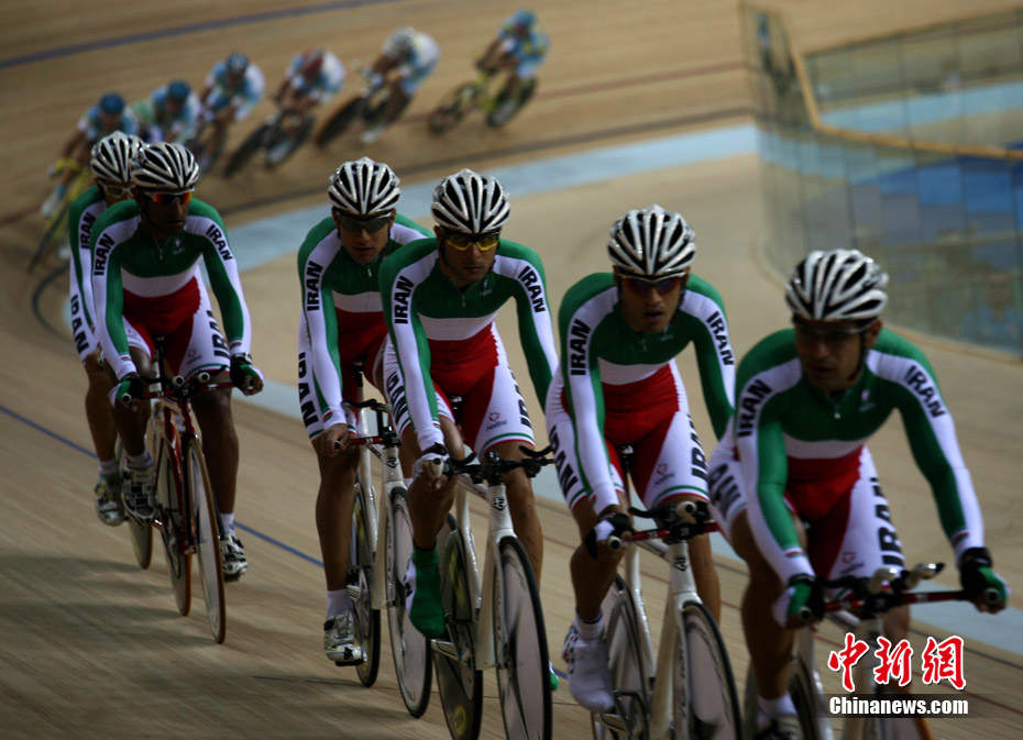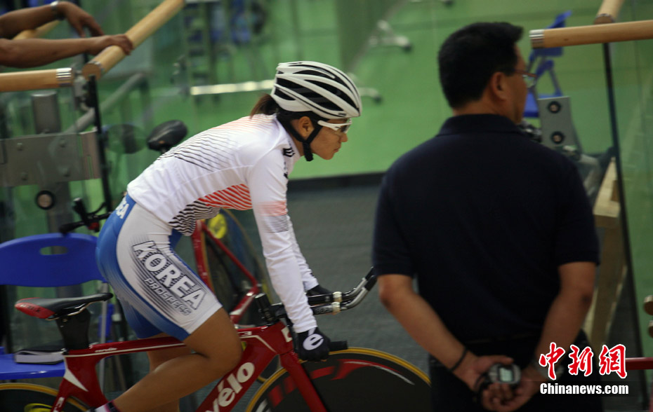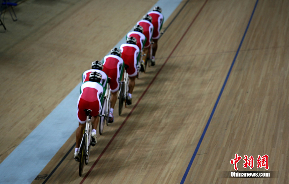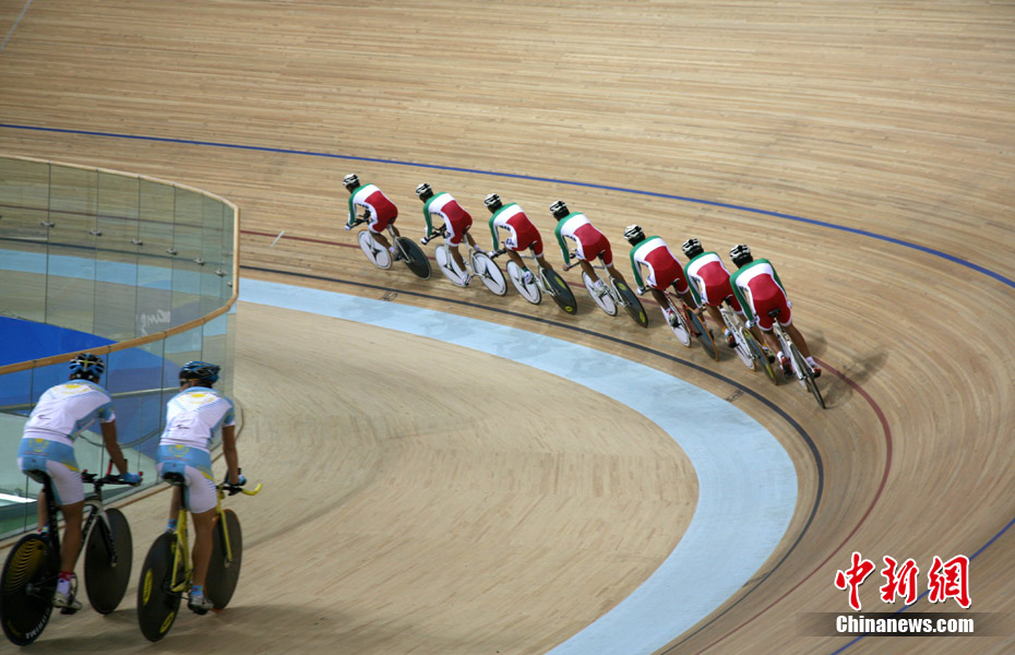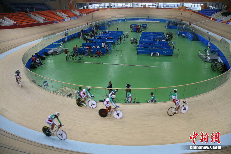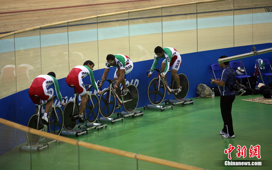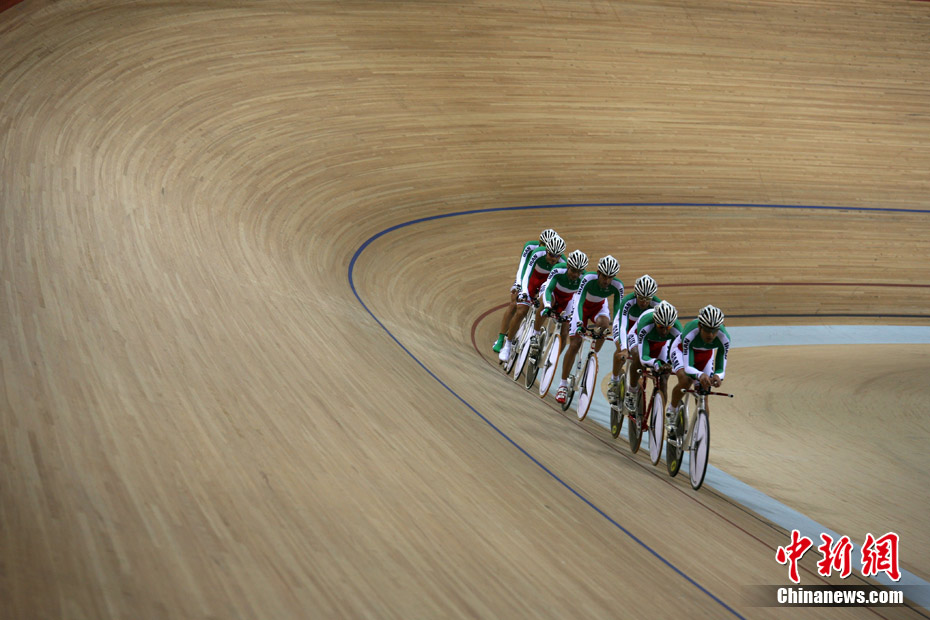 11月11日,廣州自行車(chē)輪滑極限運(yùn)動(dòng)中心內(nèi),來(lái)自伊朗、韓國(guó)、中國(guó)香港等國(guó)家和地區(qū)的自行車(chē)運(yùn)動(dòng)員進(jìn)行賽前場(chǎng)地適應(yīng)訓(xùn)練。中新社記者 張茵 攝