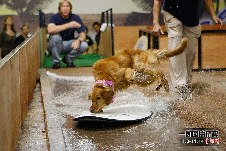 周一(8日),在美國(guó)洛杉磯舉行了一場(chǎng)別開(kāi)生面的狗狗滑水大賽,參賽的可愛(ài)狗狗們?cè)凇百惖馈鄙险宫F(xiàn)滑水“絕技”。